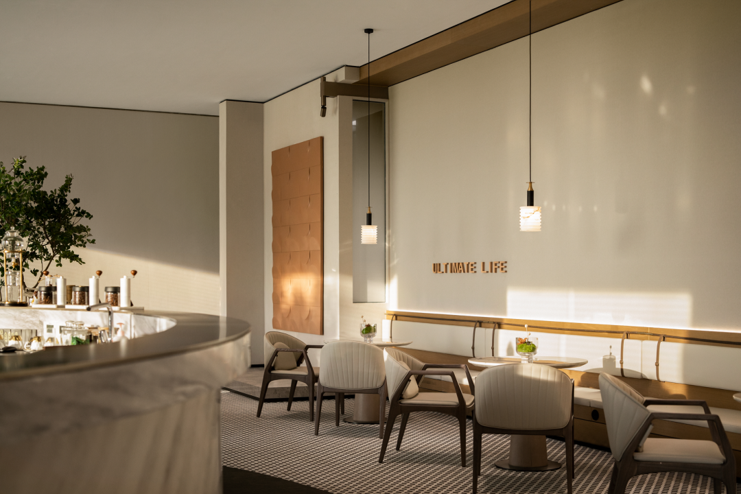 当人们享有时间,那么相应的,他们将需要一个空间载体来储存时光记忆,无论是物理空间还是精神空间,都是一种介质,联结着人与人之间的凝聚力。沿着游览动线的变化,设计师对未来社区复合态模块的打磨,以材质语素来牵引空间叙事节奏,温润如木艺,雅致如金属,共同烘托着时空界面的一致性,以及某种专属于极简的高级趣味。