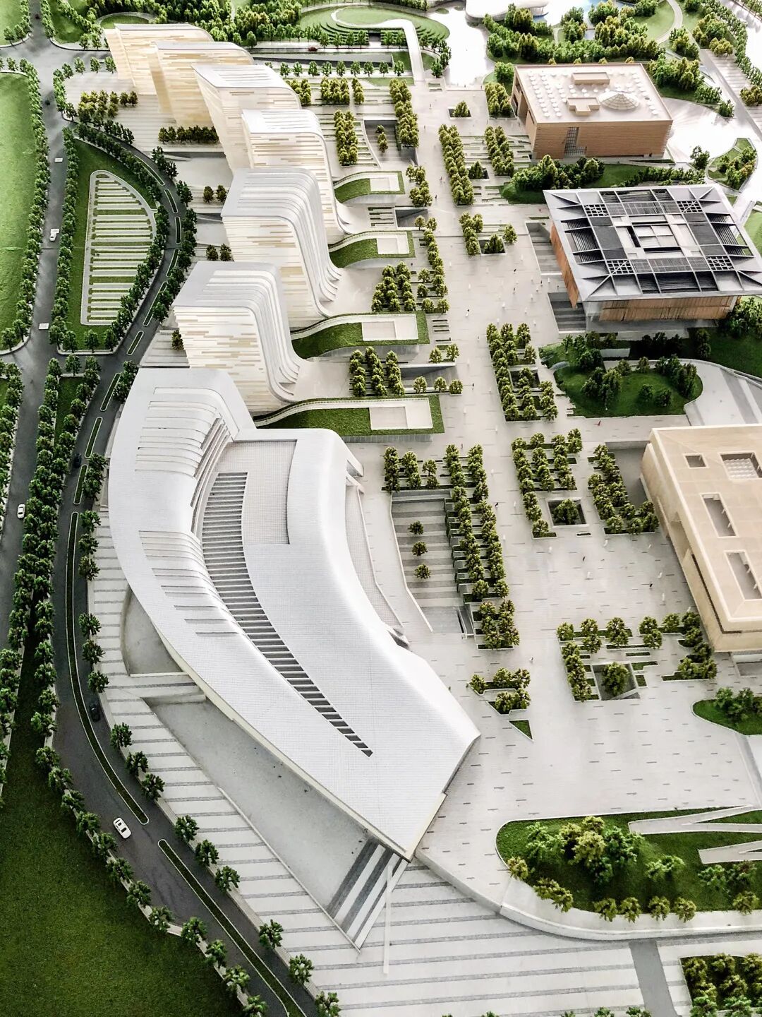 济宁市文化中心是山东省的重点项目,LLA作为三期工程的总体规划和建筑设计单位,尊重项目周边的建成环境与区域文脉,以一种整体而又协调的方式,将新功能和新建筑与街区已有的公共文化设施完美融合。设计将景观作为文化建筑与综合体融为一体的必要元素,建立一个包含公园、街区景观、商业、办公的多元化体验空间,为现有文化建筑做出补充。