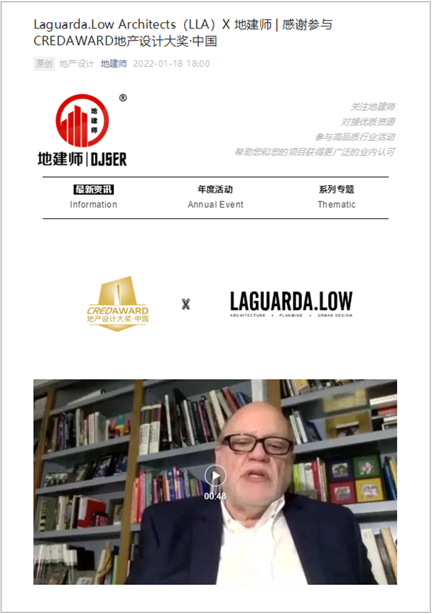 LLA携新一代文旅商业综合体项目“深圳宝安欢乐港湾”和公园型商业综合体改造项目“东京南町田Grandberry Park”,参与角逐2022年第八届CREDAWARD地产设计大奖·中国。创始合伙人Pablo Laguarda先生亦接受奖项主办方地建师DJSER的采访并分享了此次参赛项目的亮点。