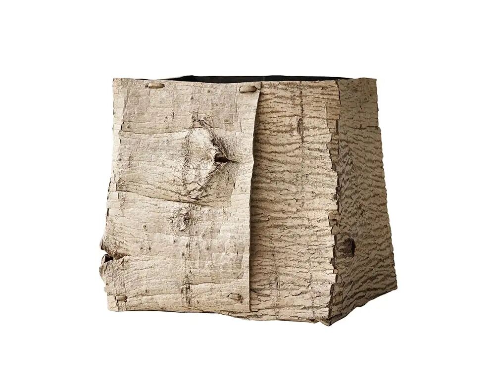 这一简洁而充满视觉张力的木盒由来自日本东北地区的胡桃木制成。木头被剥去了树皮,然后被塑造成一个简单的盒子形状,显示了工艺手法对材料的理解与尊重。树皮在侧面重叠,用简单的缝线固定,其形状让人想起日本的插花花瓶传统。盒子的简单形式使其对材料本身的尊重和木材的天然性质彰显无遗。