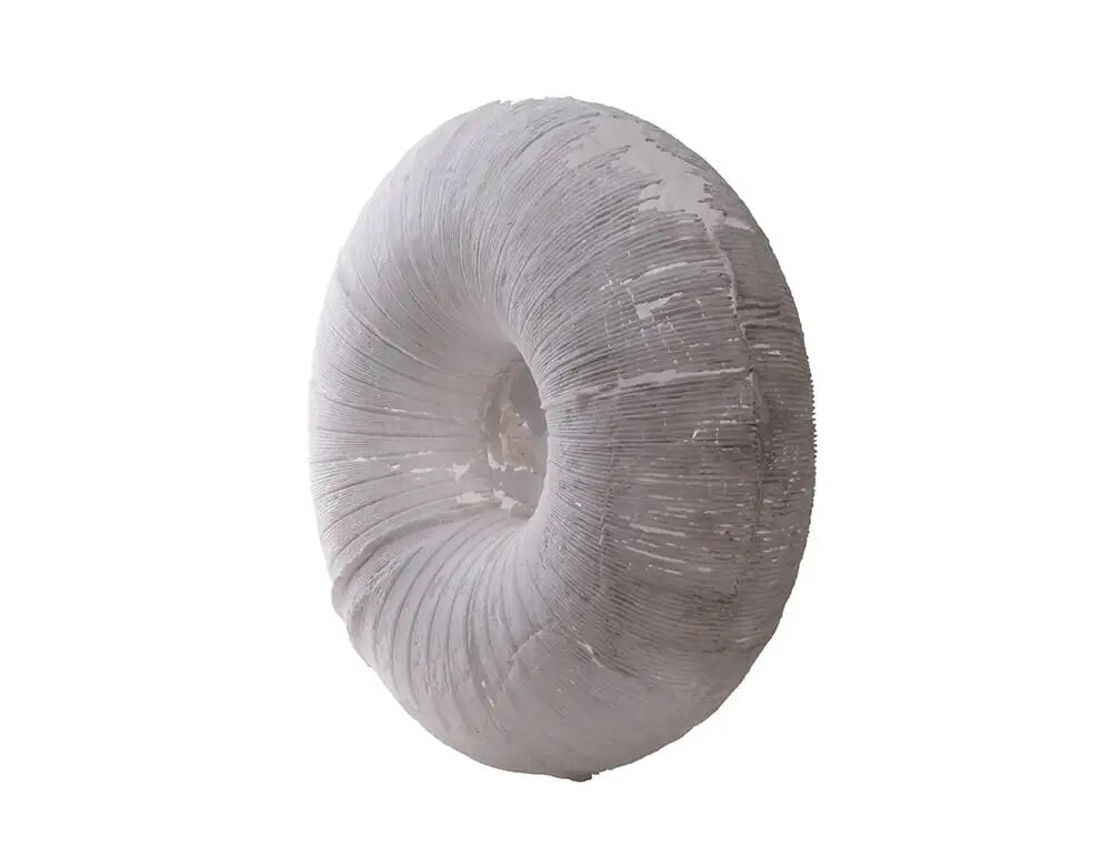 这件硕大而脆弱的作品探索了玻璃材料的极限。创作者使用玻璃粉填满环形石膏模,而后入窑烧制,所产生的作品是薄而空的,表面有呈开裂、收缩和滴落状的区域。这些材料的热力转变留下了强烈的视觉痕迹,因为每处细节也对玻璃成型有着至关重要的影响,整个过程必须被仔细控制,以防止玻璃脆弱结构的破裂。