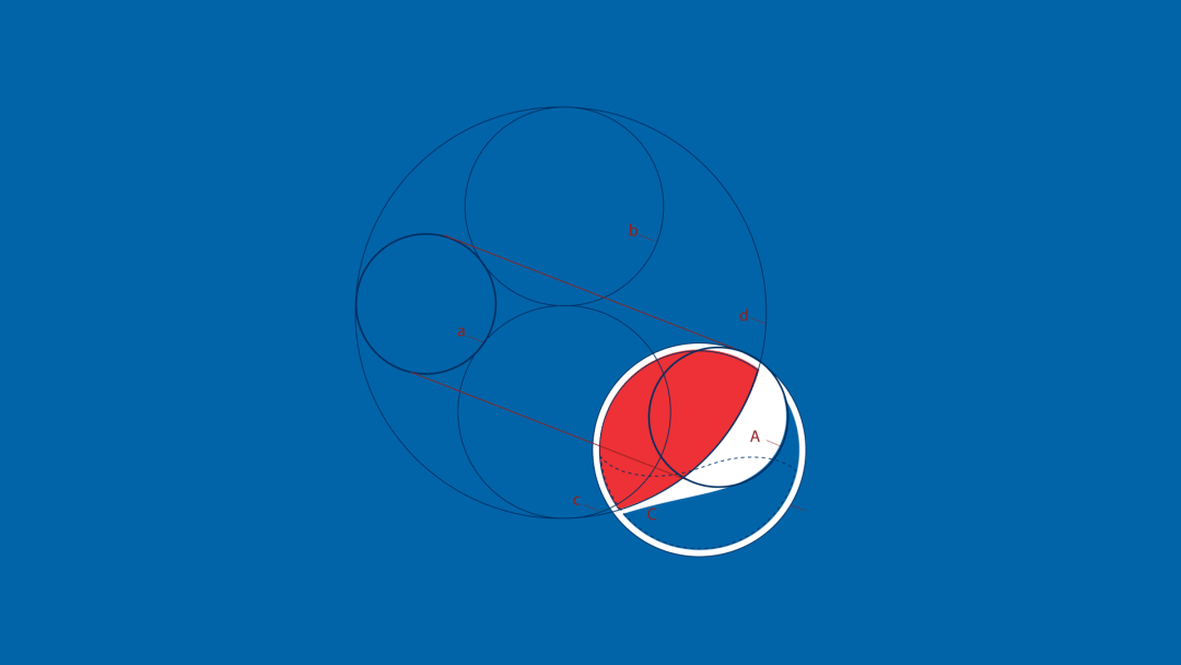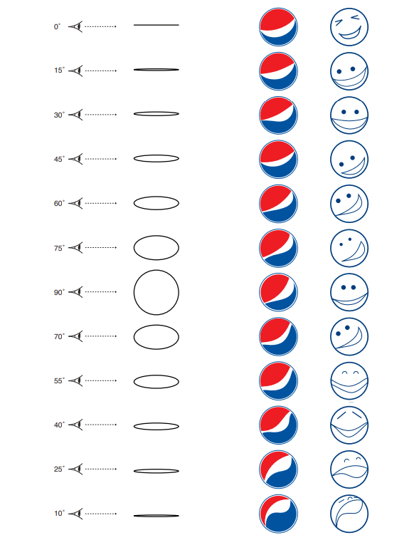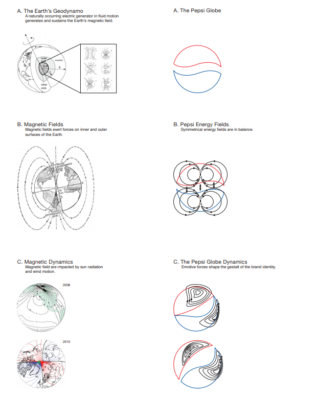 接下来厉害了,由于磁场辐射和风的影响,考虑到能量学,所以百事的LOGO应该这样变,换一下开口的角度,毕竟被风吹过了。