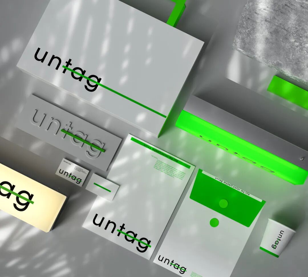 untag是一个针对年轻消费群体的新兴品牌,untag倡导以健康、积极、阳光的心态去迎接生活,拒绝盲从,树立自信,摒弃世俗的眼光,创造属于自己的精彩。untag标志创意来自日常写作习惯中的“删除线”,写作时我们常常将表达不准确的文字用删除线划掉。品牌名称untag 译为不要标签,所以标志将品牌名称中的“tag”用删除线划掉,直观的传达“不要标签”的品牌理念。
