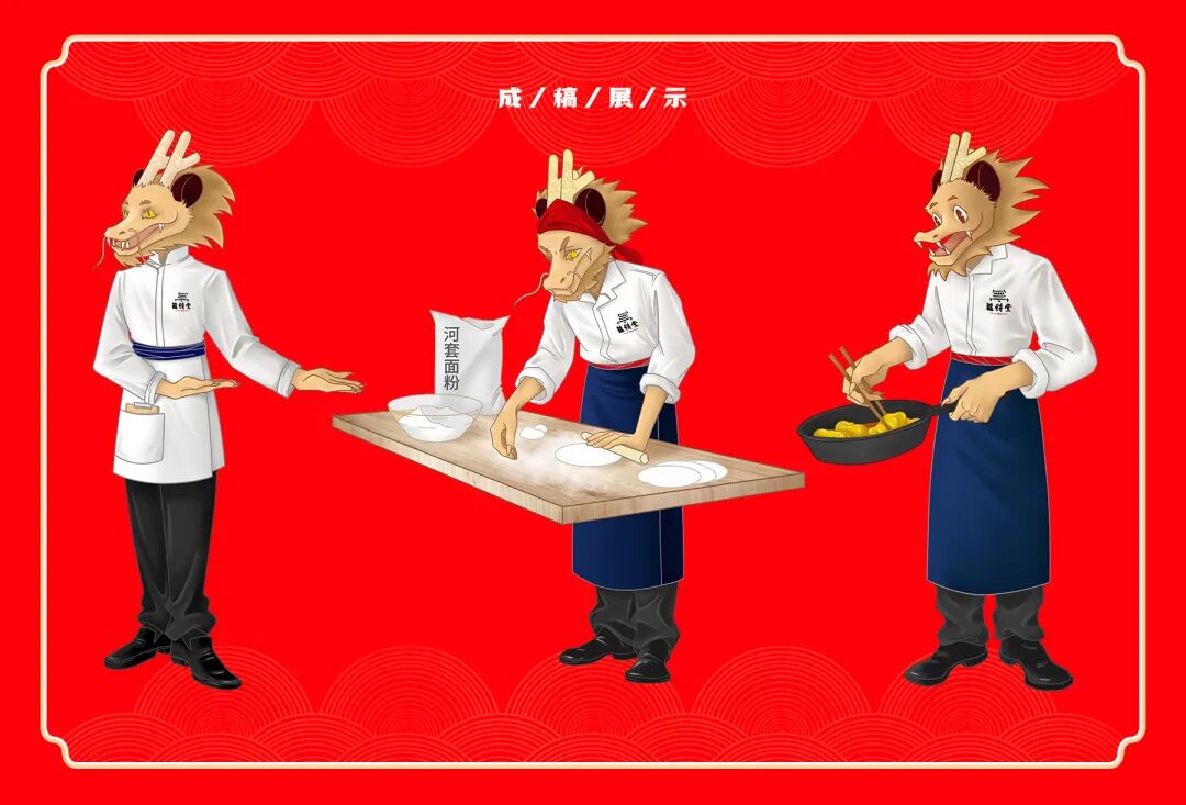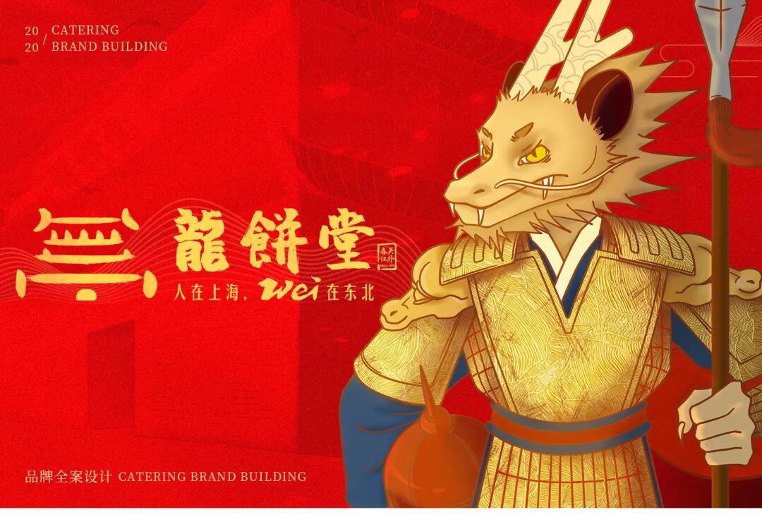 “龙”意指品牌发源地黑龙江,“饼”点名餐厅特色产品筋饼,名字中透露着东北的豪放情怀,迎合品牌故事背景。