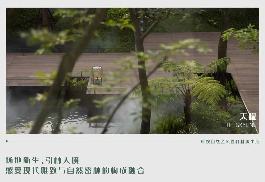 天曜是我们对于原生自然的借景与融入,是表达对隐逸林境生活美学的向往,我们期待把“林”引入到境,天赋山川茂,曜生万物新。