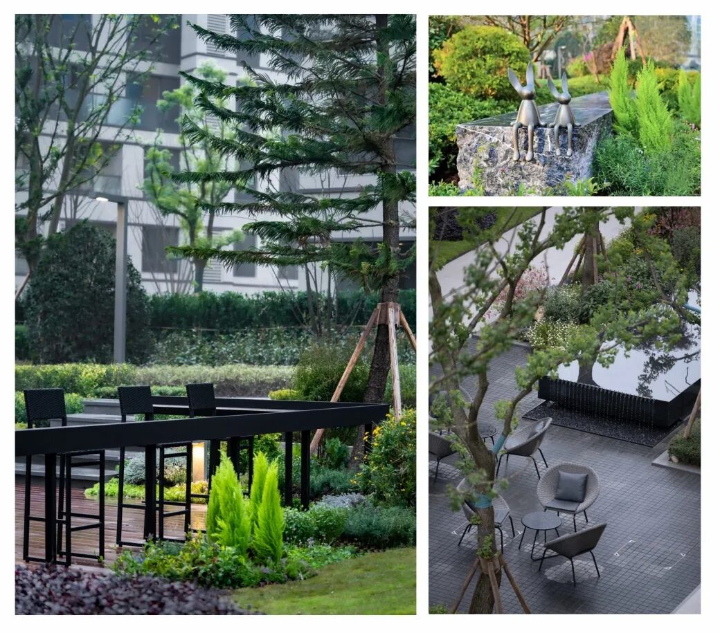 为不同场地精选每个雕塑,搭配自然野趣花境,野趣横生之余,也彰显大气与清雅。