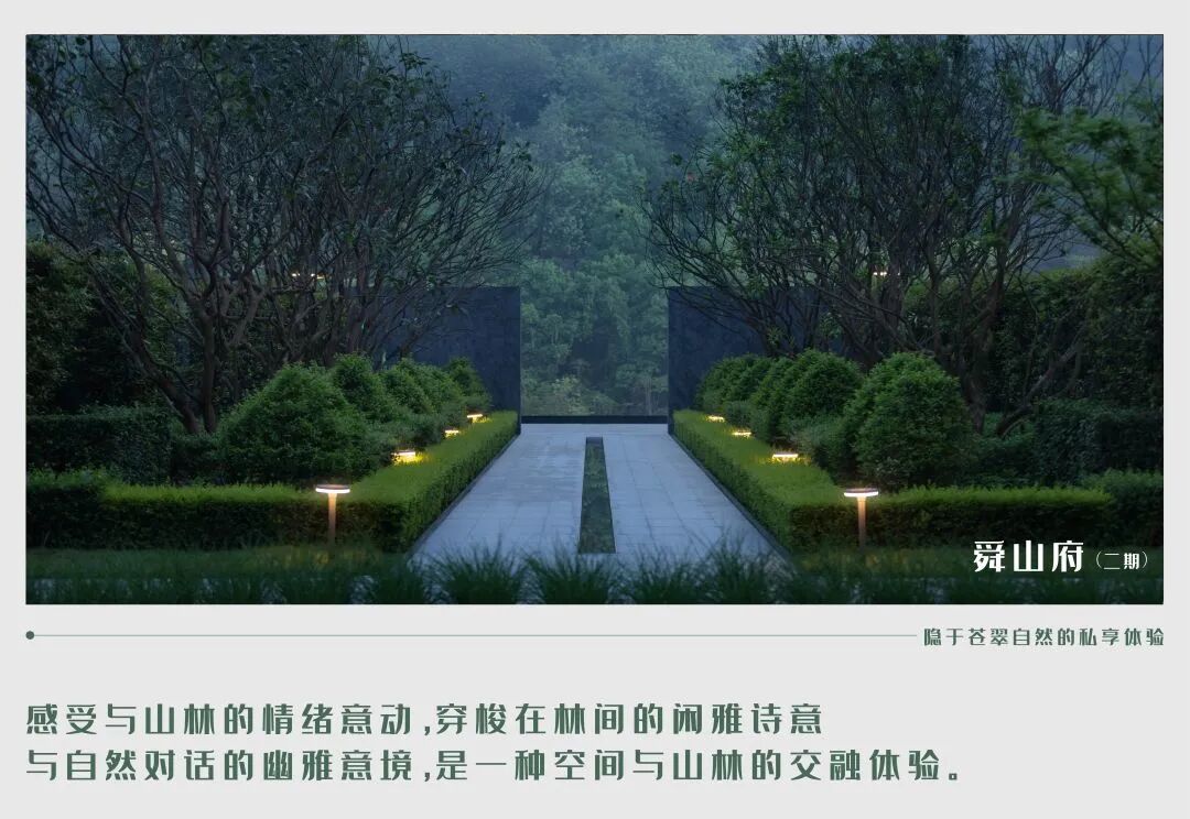 与自然共生的“森居”理念贯穿了整个舜山府园区,归家即是一场宁静的心灵之旅。进入园区的当下,便可拂去一天的疲惫。