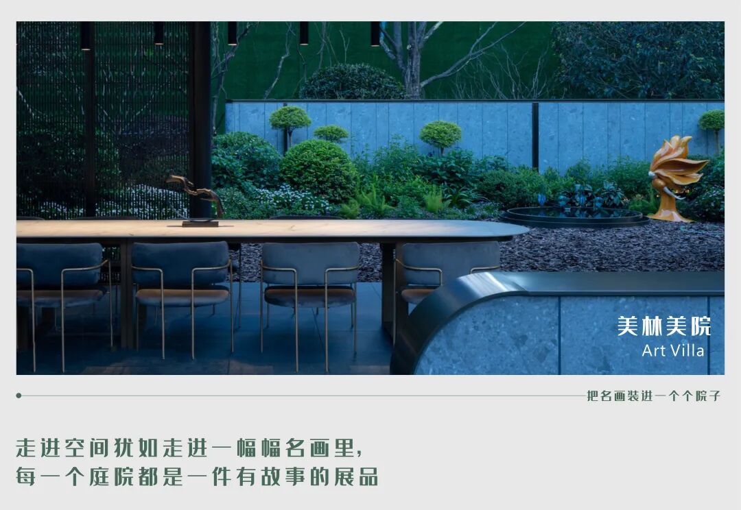 在龙湖美林美院,设计结合美院在地艺术文化,从印象派画作中提取原野生活的场景,让美自然生长。