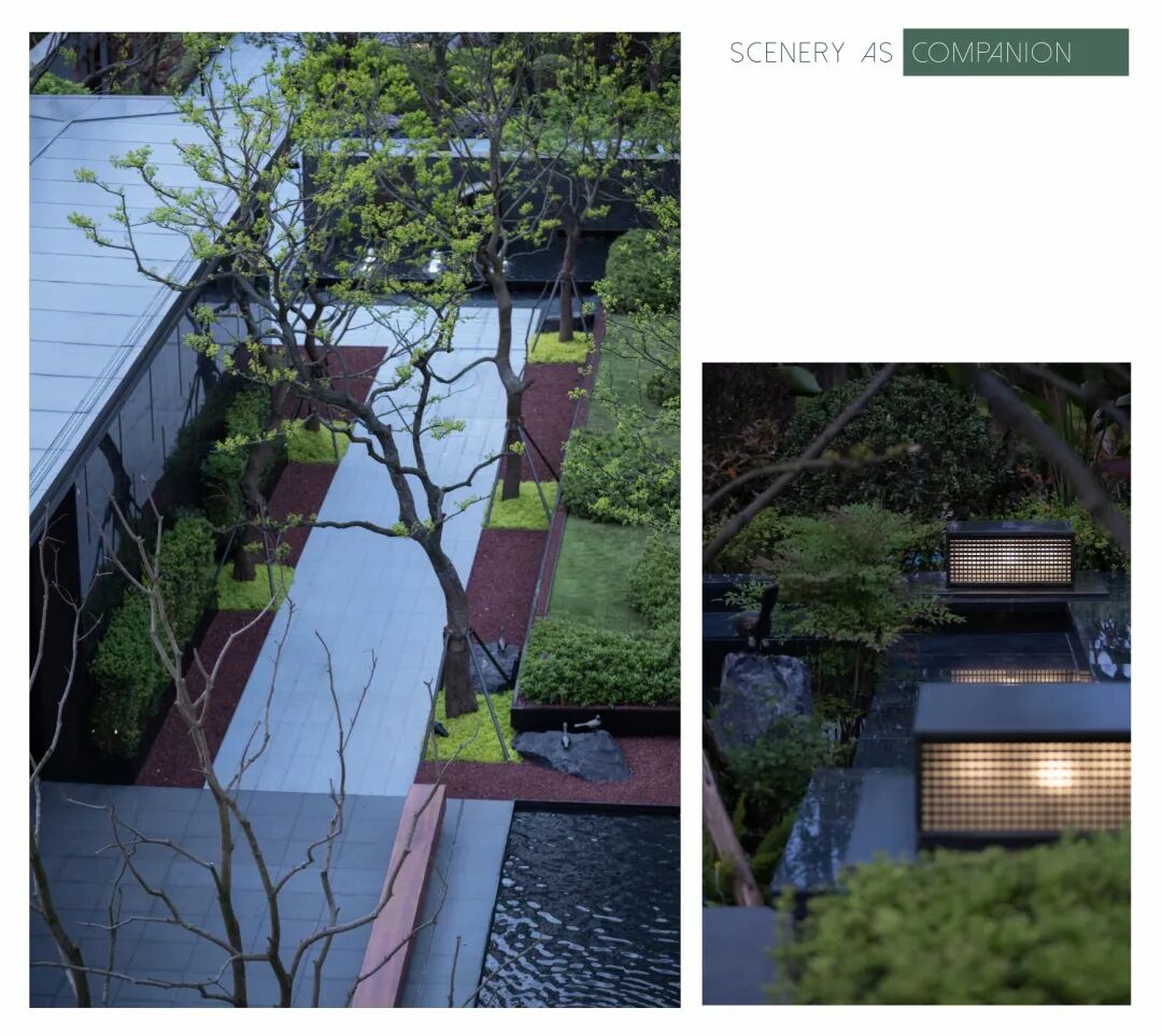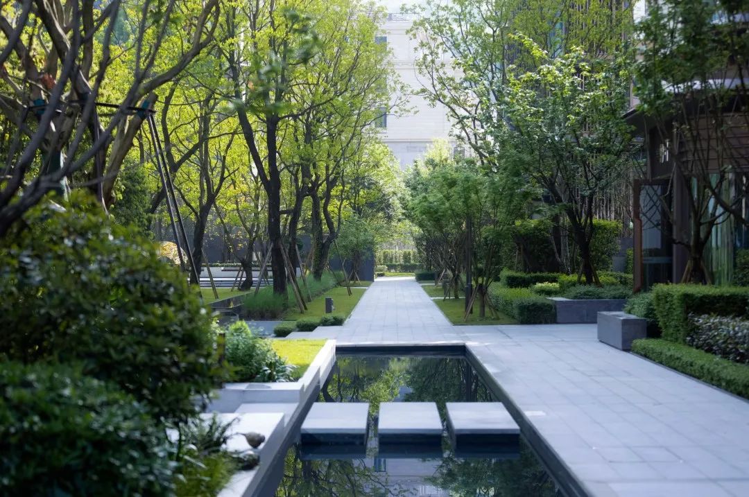 优雅与温暖的景观质感,只为每次归家的你都能够感受这沁人心脾的绿意和潺潺水流的闲适。