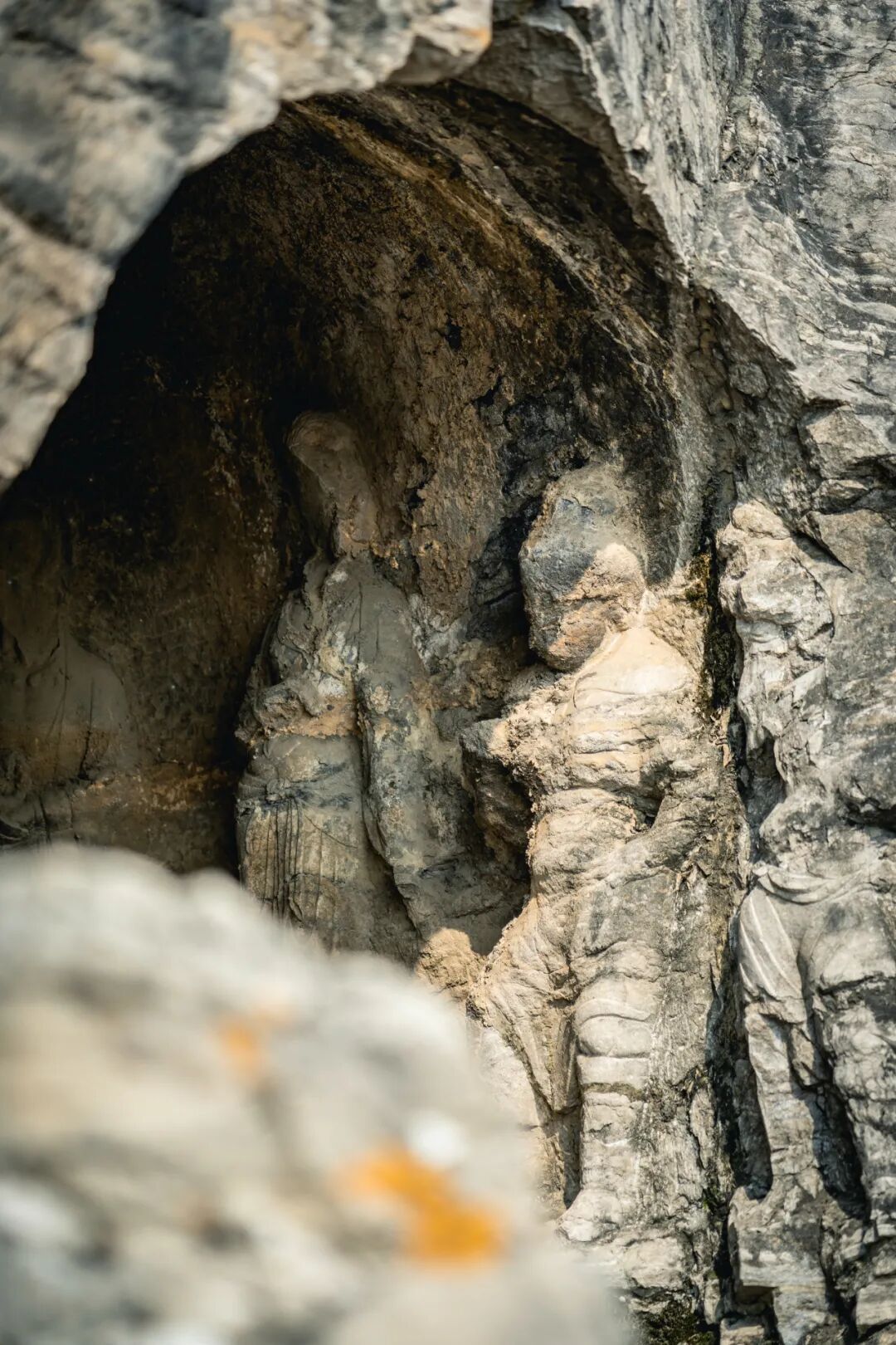 历史的晦涩在这里显露无疑,那些动态的钎凿斧刻凝固了,成为刻石上颔首凝眉的面容。