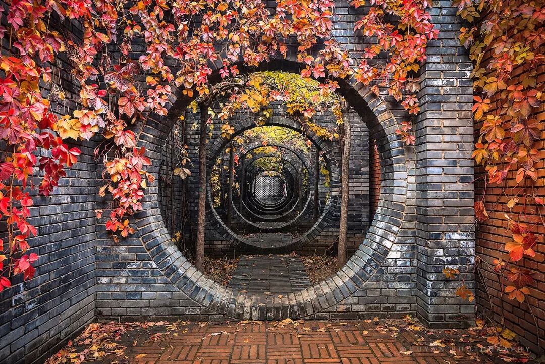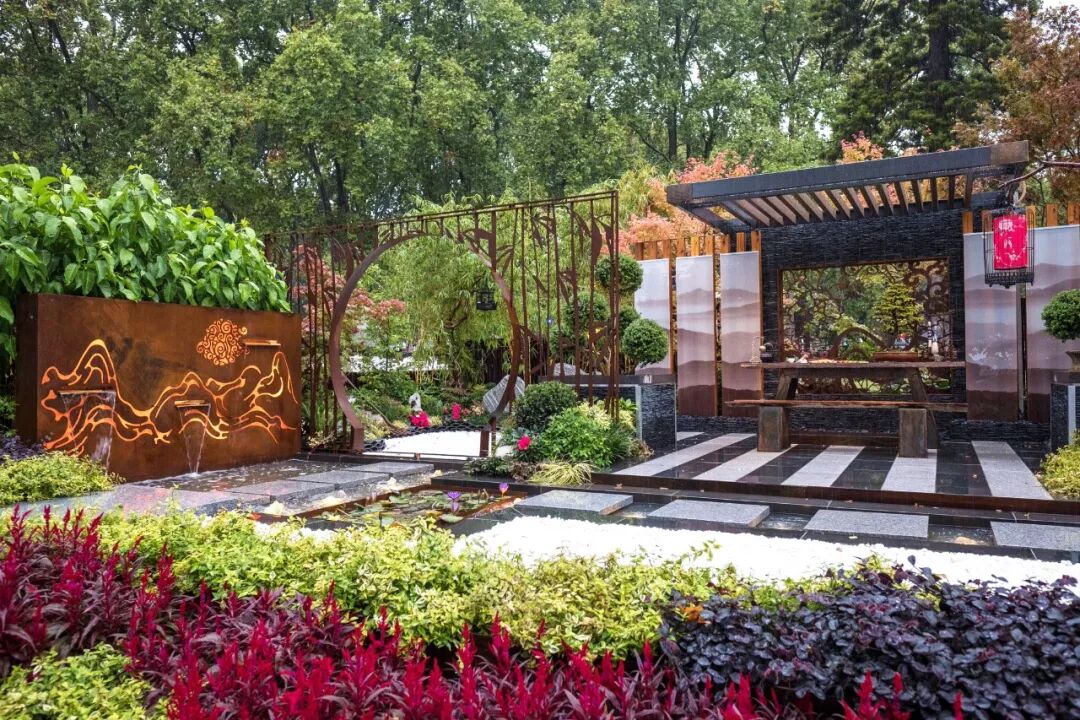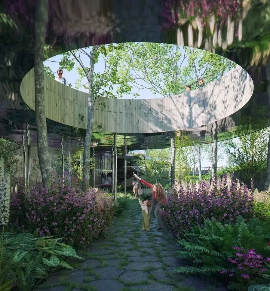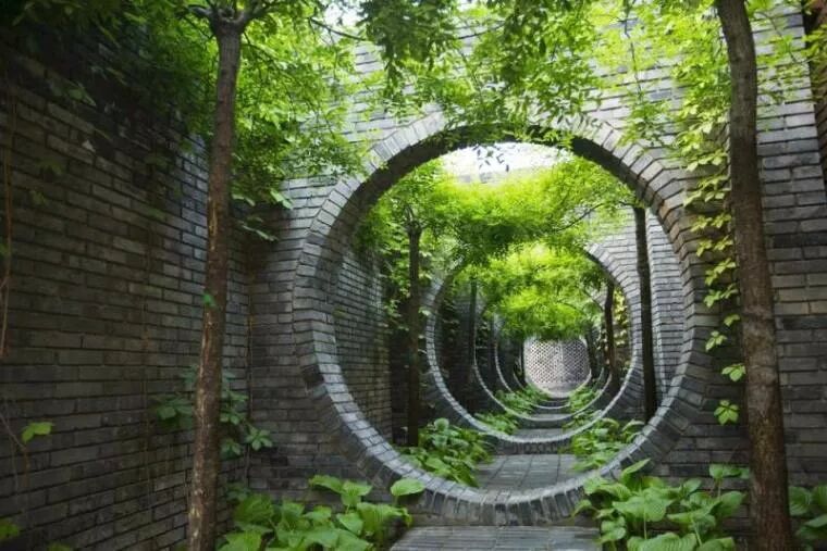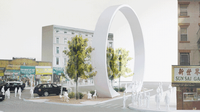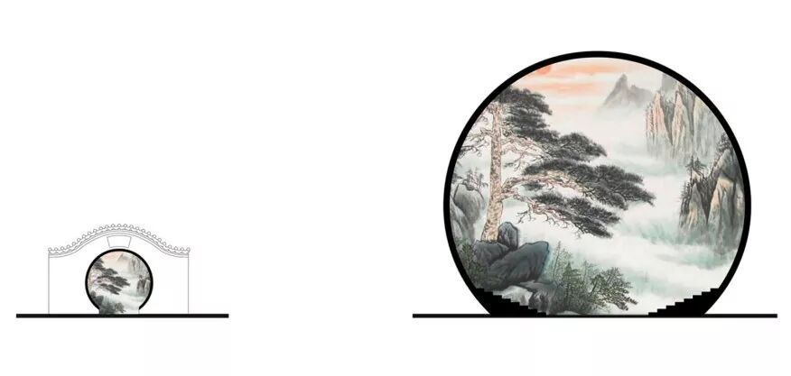 作为中国古典建筑的主要元素,月亮门在其圆形框架内捕捉郁郁葱葱的花园景观。设计师受到月亮门作为门户和窗户的双重性的启发,将唐人街门户重新构想为圆形拱门。