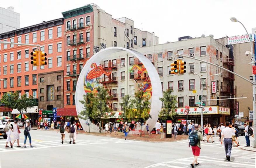 这座拱门高48英尺,迎接到唐人街的游客,形成一种独特的圆形形状,它是包容与和谐的象征。拱门平衡了对中国设计传统的尊重,不仅为唐人街而且为整个曼哈顿下城提供了一个扩展的角色,它捕捉了唐人街及其周边地区不断变化的街景。