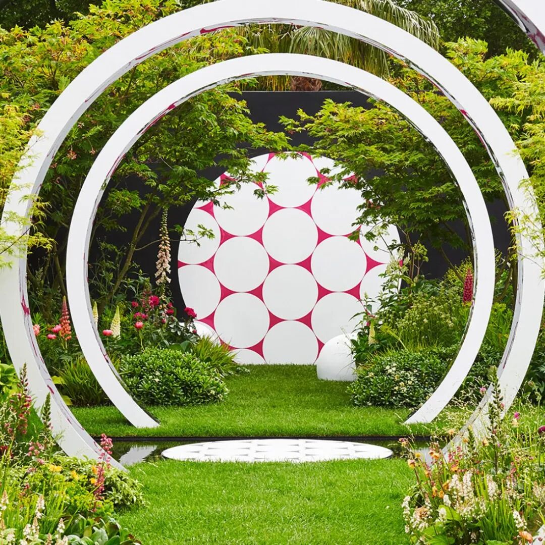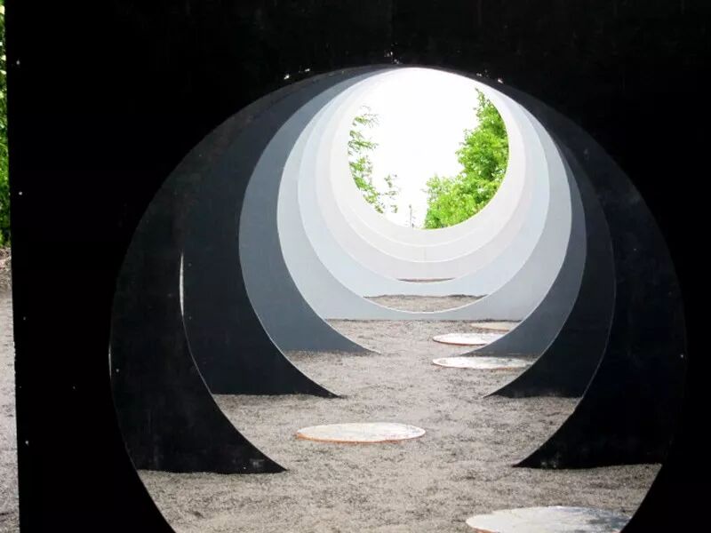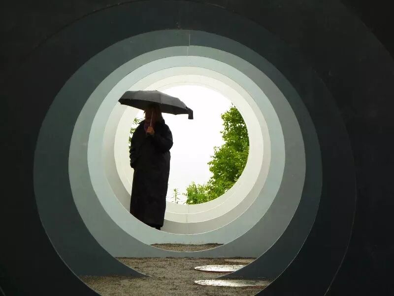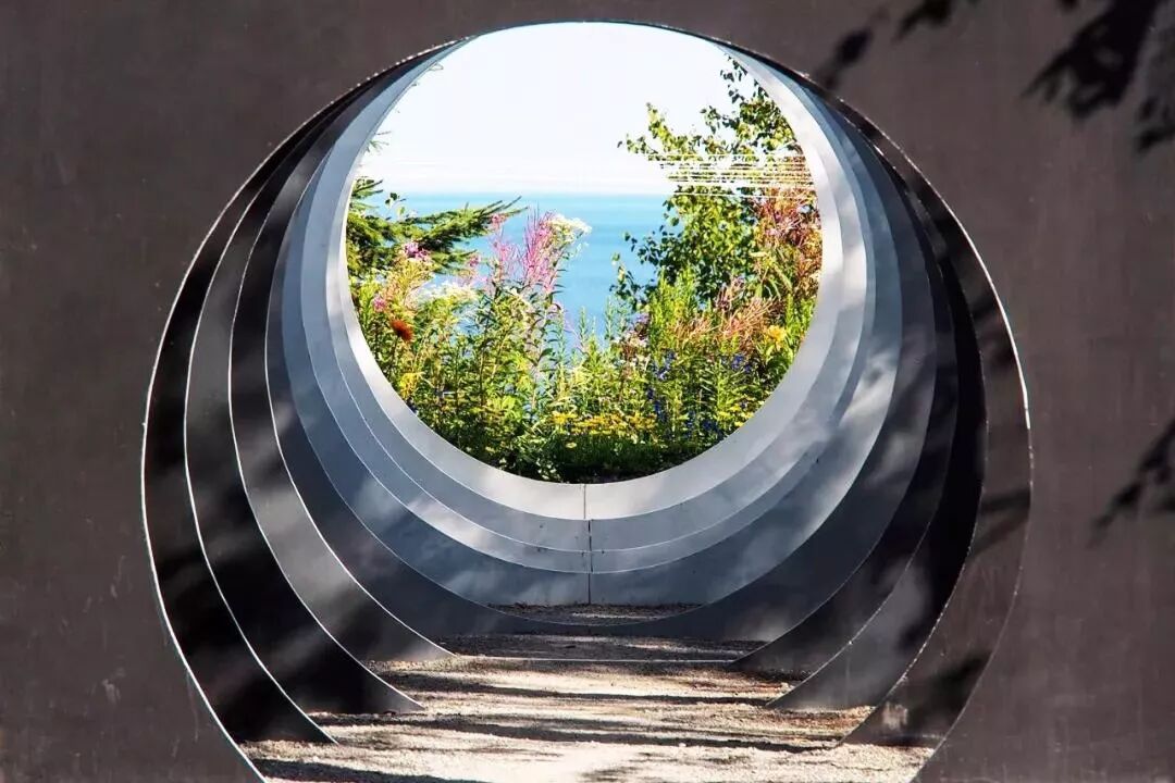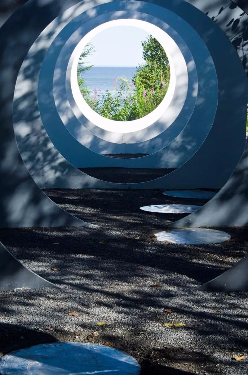 这是加拿大梅蒂斯国际花园展上的作品,由 Balmori Associates设计。设计师Diana Balmori把场地设计成了一个“在水中划圆”的花园。这里临近米蒂斯河海湾,透过圆形的框景,可以欣赏河岸美丽的风景。