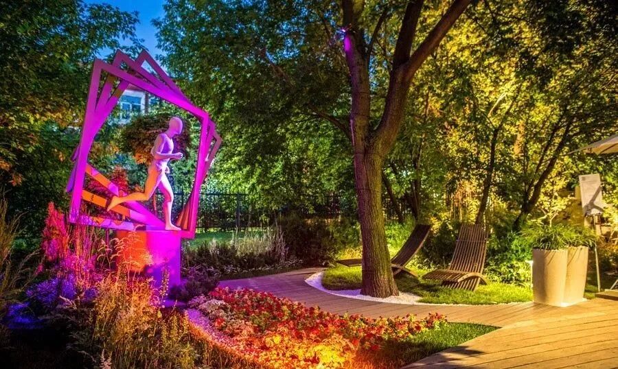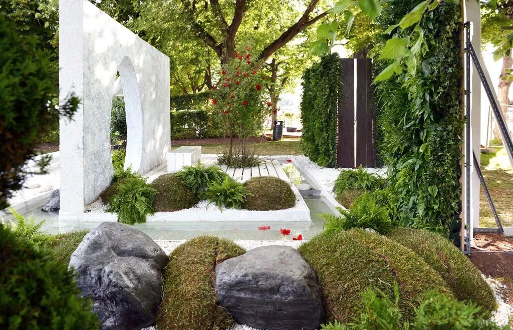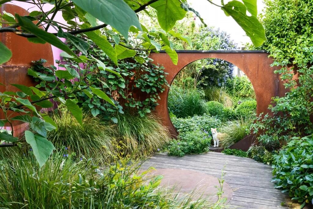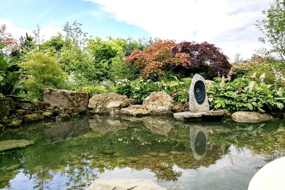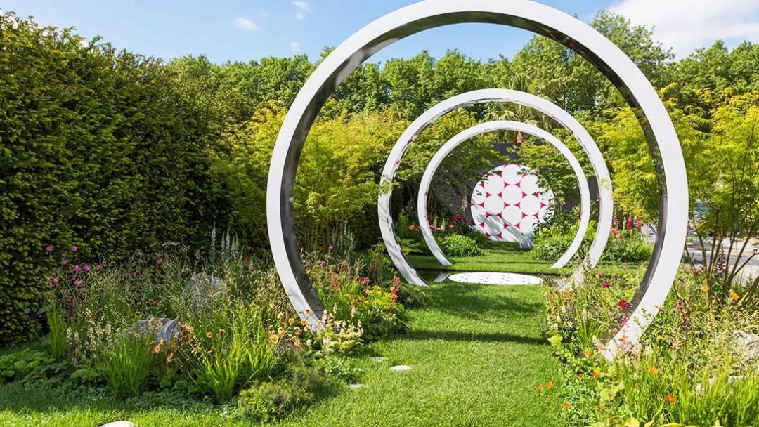 这是加拿大梅蒂斯国际花园展上的作品,由 Balmori Associates设计。设计师Diana Balmori把场地设计成了一个“在水中划圆”的花园。这里临近米蒂斯河海湾,透过圆形的框景,可以欣赏河岸美丽的风景。