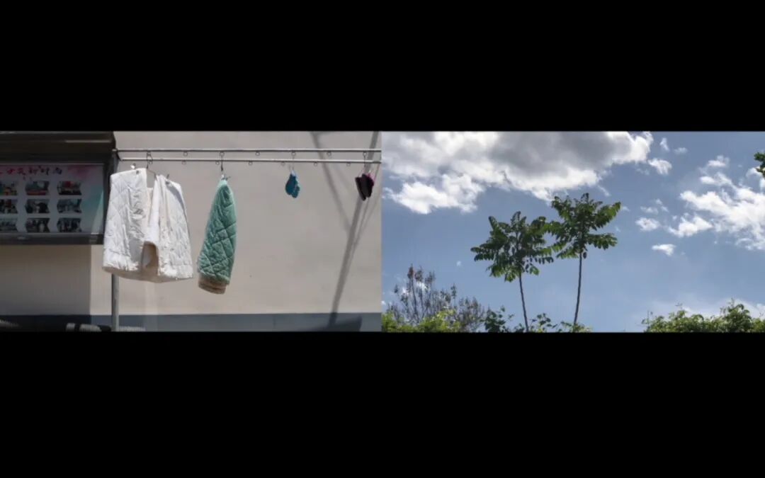 《风》系列每件作品中的两段影像分别是建立在自然与非自然状态下,风在某种层面上的视觉传递性和感知煽动力似乎都带有媒介的职能,贯穿于前后空间中。我将空间与事物出现新的状态以及构造出短暂的情境归结为“第三者”。每件影像中先有人为搭建“雕塑”的拍摄,再匹配自然状态下的生活中的局部。观者日常经验与该切片的沟通都在生产作品新的意义,并重新定义该情境。