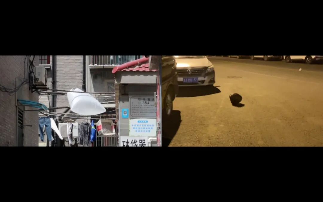 右分屏人为搭建的“彩虹”雕塑出现后,匹配到了市井里宾馆门前晾晒床单的记录。