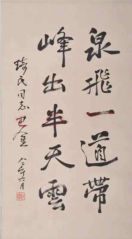 巴金的两个作品,泉飞一道带,峰出半天云。这两句诗出自李峤的《山》。这两幅字俊秀潇洒,空灵恬静。