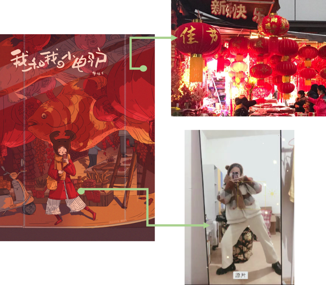 而进阶班的大作业《我和我的小电驴》系列中的《年味》当时就是参考自己的照片创作出来的。