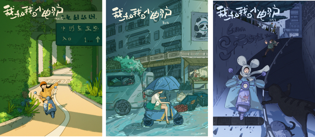 这位同学最令人印象深刻的作品就是《我和我的小电驴》系列啦 👇