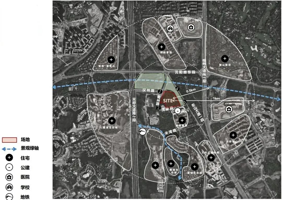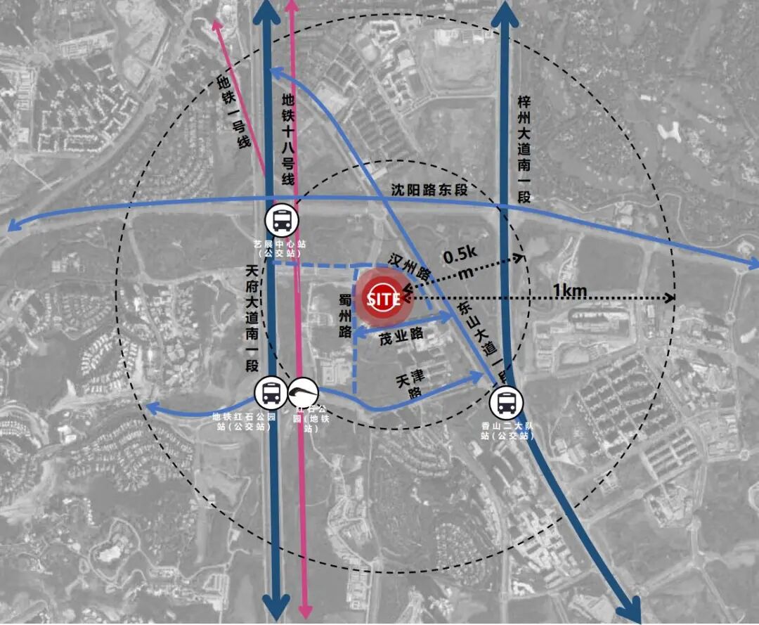 该学校(暂定为麓湖北路学校)位于华阳街道香山村八、九组,沙河村六组,面积约60.9亩。东侧和北侧为汉州路,南侧为茂业路,西侧为蜀州路,紧邻红石公园地铁站,区位优势显著。