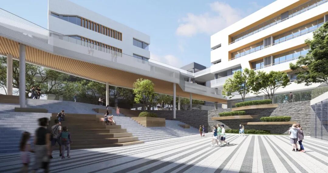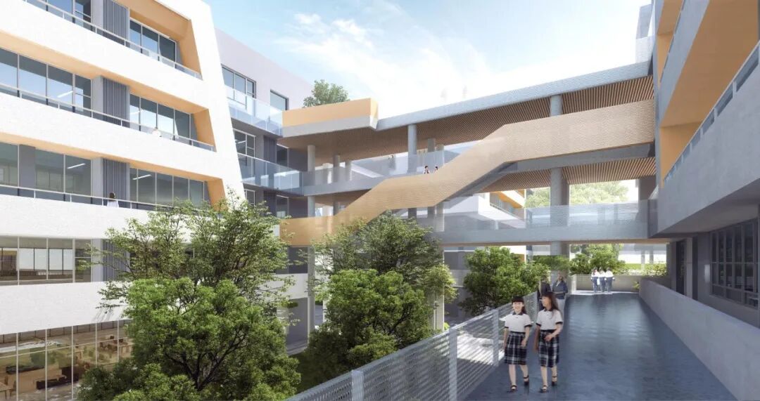 在空间打造方面,学校将打造多层次趣味空间,多维廊道空间,增大公共空间的尺度感,为孩子的交流互动创造了更多样的场所。