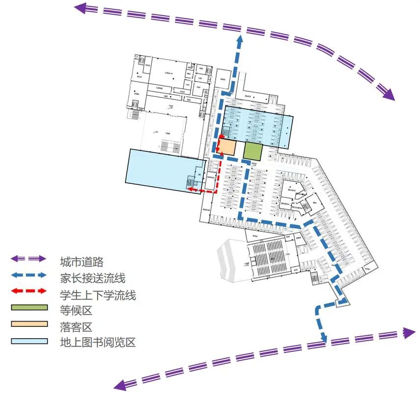 此外,还会将地下车库和学生接送结合起来,实现地下空间的共享。