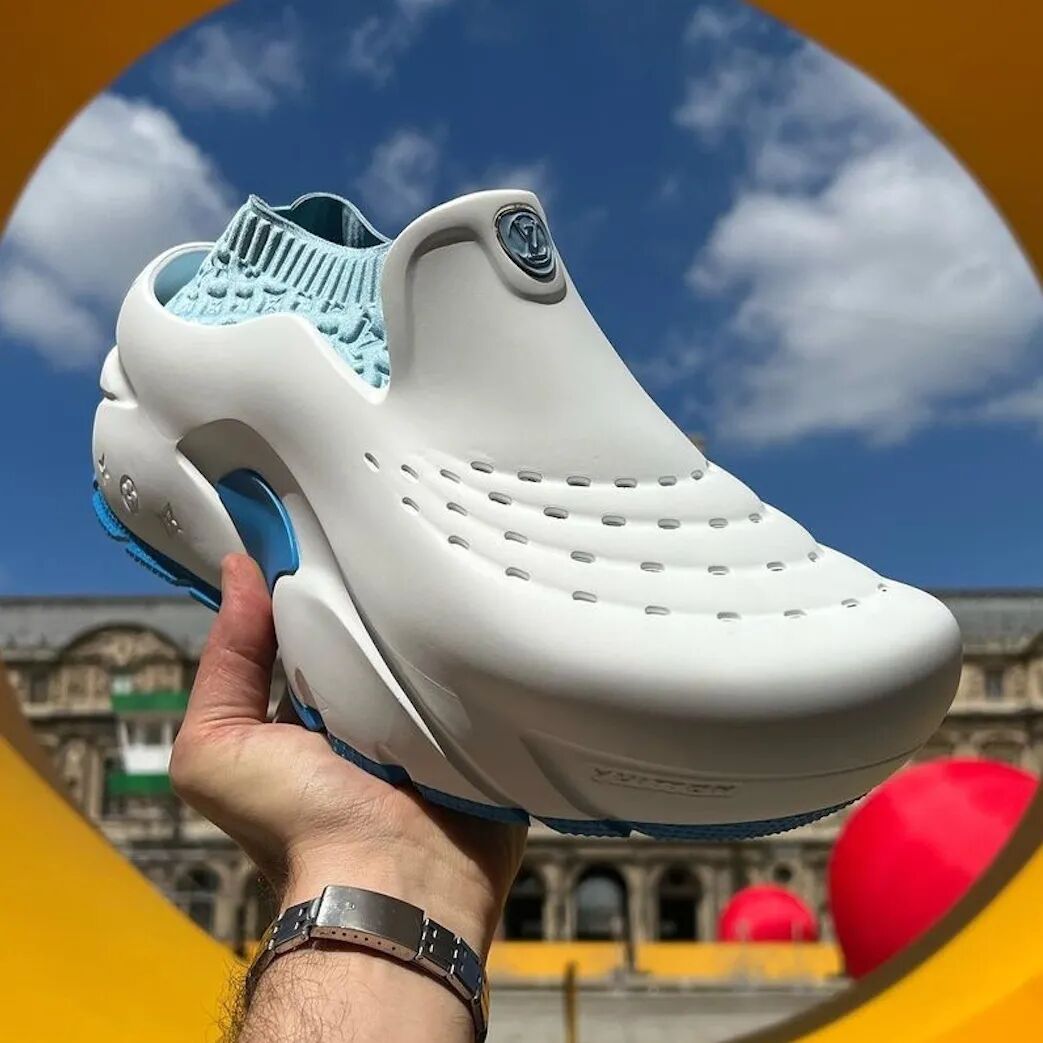 在之前落幕的 LOUIS VUITTON 2023春夏男装秀场中,不论是有着亮眼撞色设计的全袜套洞洞鞋,还是经过重新设计后更加宽大、圆润的 Trainer 鞋款,都给人留下了深刻的印象。