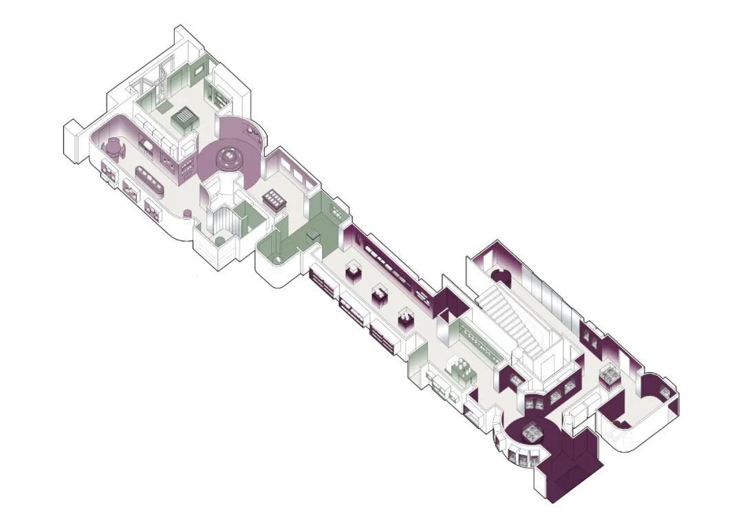 最新文章2023-11-30 伦敦 Asprey 240 新旗舰店设计 | Coda to Coda “Asprey 240”是一家260平方米的新旗舰店,以电影般的空间顺序展示了该店独特的系列和产品。这家临时商店位于梅费尔布鲁顿街的现有建筑内,呈现了对伦敦豪宅古典密码的当代诠释。 展示基座的设计细节源自伦敦砖块的尺寸,空间以Asprey标志性的丰富紫色和绿色色调的渐变色调完成,这让人想起了雾气弥漫、石楠遍地的英国摩尔人,模糊了室内和室外的感觉。中央的一系列门道形成了一个夸张的视角,勾起了人们发现外面空间的兴趣,就像在大自然中漫步和探索的欲望。贯穿整个空间的音景强化了这一感觉,即豪宅的庄严房间正在融入肆无忌惮的狂野之中,这是通过当代古典音乐与英国乡村现场录音的层叠而实现的。 项目信息 项目地点:英国・伦敦 使用面积:260平方米 项目设计:Coda to Coda 编译/排版:微信公众号 T5OP设计网 项目摄影:Side Spaces 项目时间:2021年 本文来自微信公众号“T5OP设计网”(ID:T5opCom)。大作社经授权转载,该文观点仅代表作者本人,大作社平台仅提供信息存储空间服务。 TAGS: 伦敦感觉空间英国项目 相关文章英赫日报 | 李宁 × 空…米兰时装周的异星来客,用结…米兰“MoLo”移动与物流…西班牙艺术家 Juan d…把小鸟画成美少女,她弃医从…这些鸡蛋包装不只是有趣,设…国产文具又炸了!晨光再造“…七点资讯 |《更衣人偶坠入…AlphaDraw筑绘通「…秦始皇的黑,是你不懂的黑。