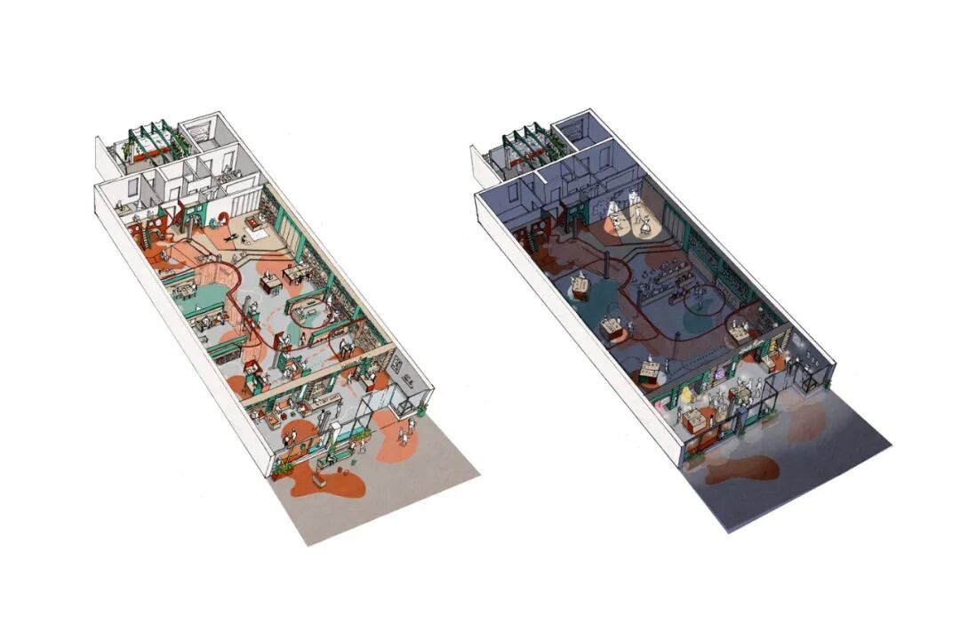茂盛的户外植物是空间体验的核心部分,柔和地形成了边界,让人们沉浸在城市行走的乐趣中:散步、约会,以及从日常生活中短暂逃离的片刻。一个社区广播站、一个花店和一个艺术画廊使得高街的缩影更加完整,用零售和文化活动填补了城市空间。