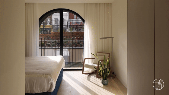 设计师大量运用经典的拱门红砖墙面设计了这个拥有6栋连排别墅的项目,每个住宅的入口都通向顶层,顶层包括书房和卧室。