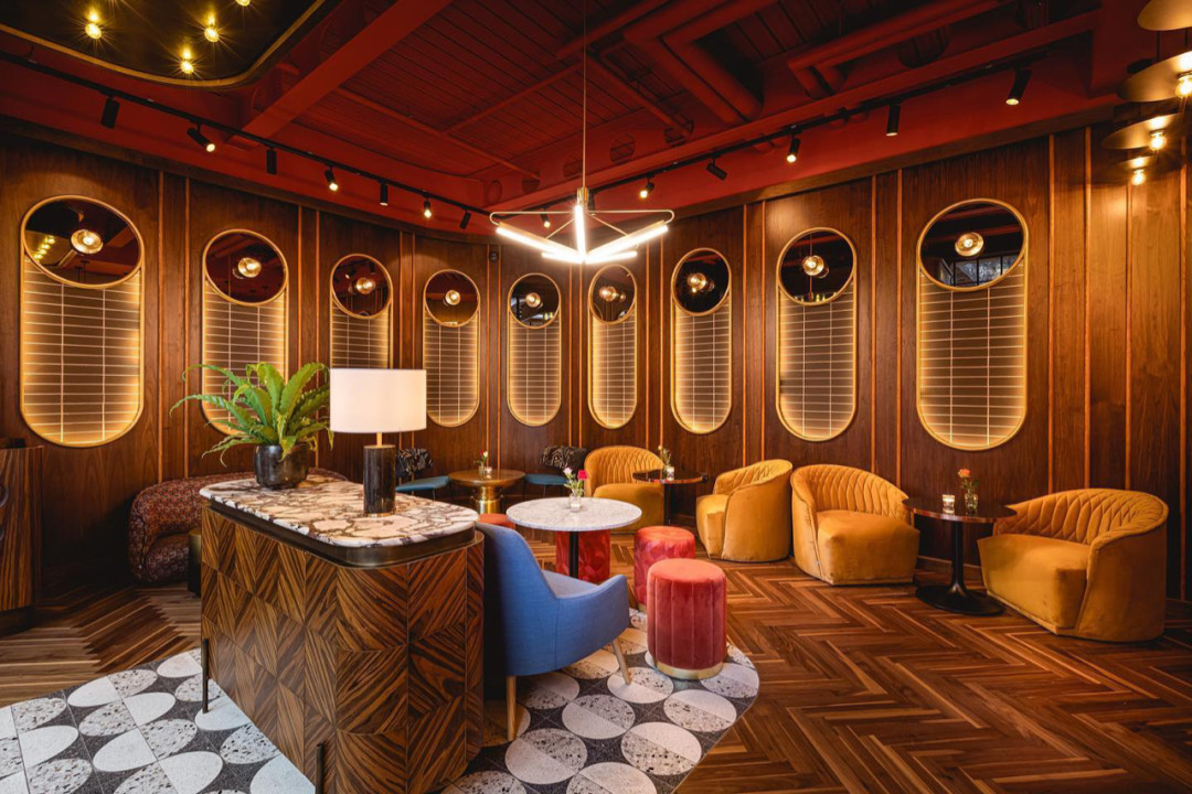 大面积的休息空间采用户外砖砌拱廊的浅棕色和金色作为主要色调,在局部深色系空间的映衬下更为凸显明亮。