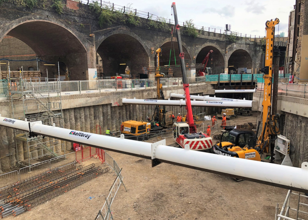 街区毗邻泰晤士河,位于冲积层的地下水位以下,将通过带有外部膜的防水混凝土来保护结构免受来自地面水的入侵,并使用拉力钻孔桩来抵抗施加在结构上的力。