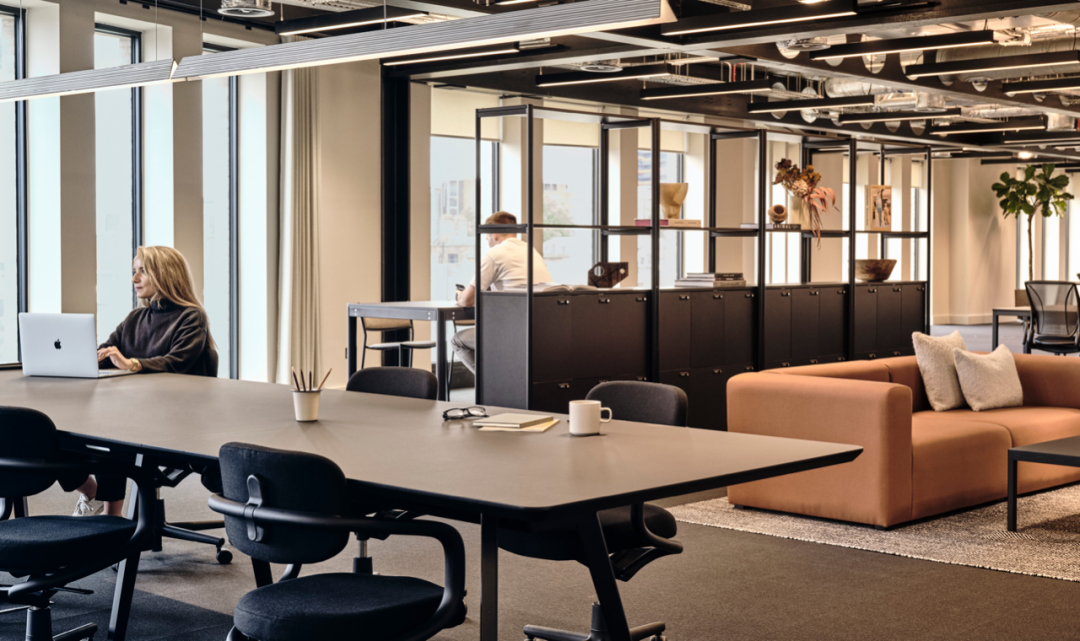大楼内包含多样化的功能区块,如灵活的联合办公空间、私人办公室、会议室、休息区、音频室和 Peloton 健身室等。