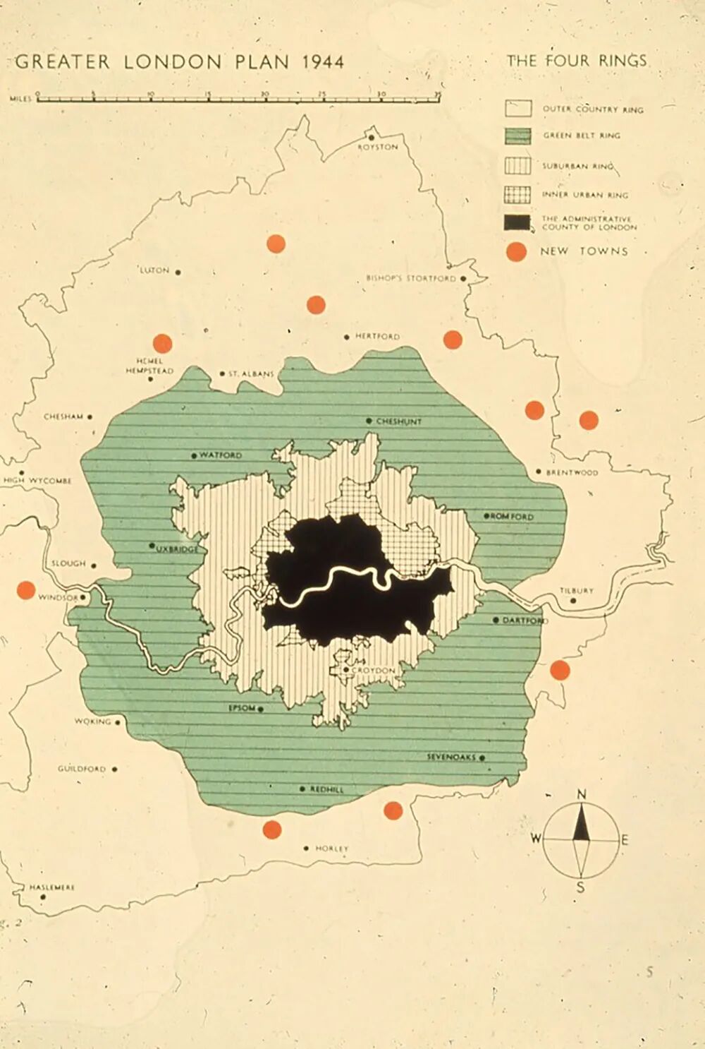 ▼ 1944年《大伦敦规划方案》(来源:flickr)