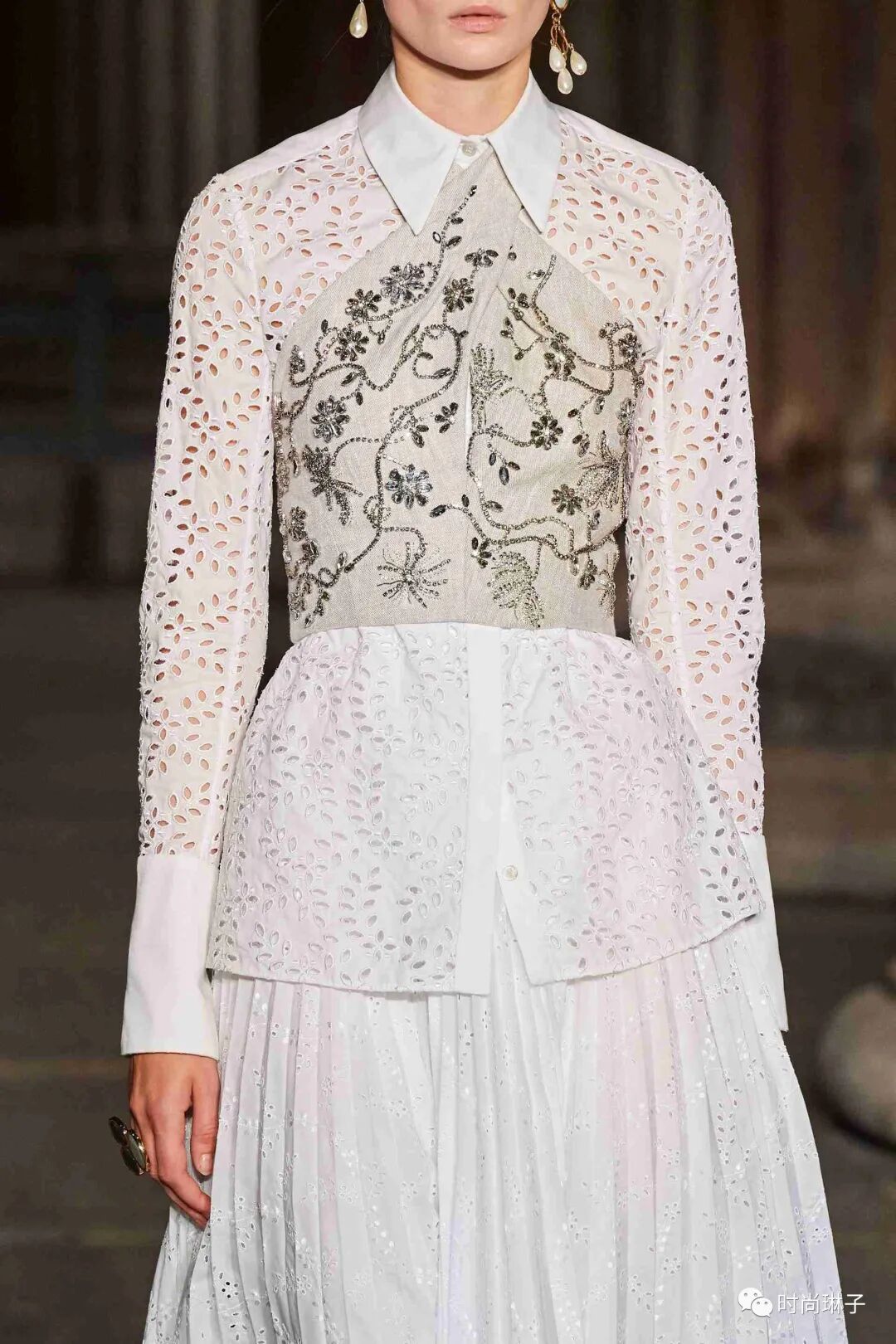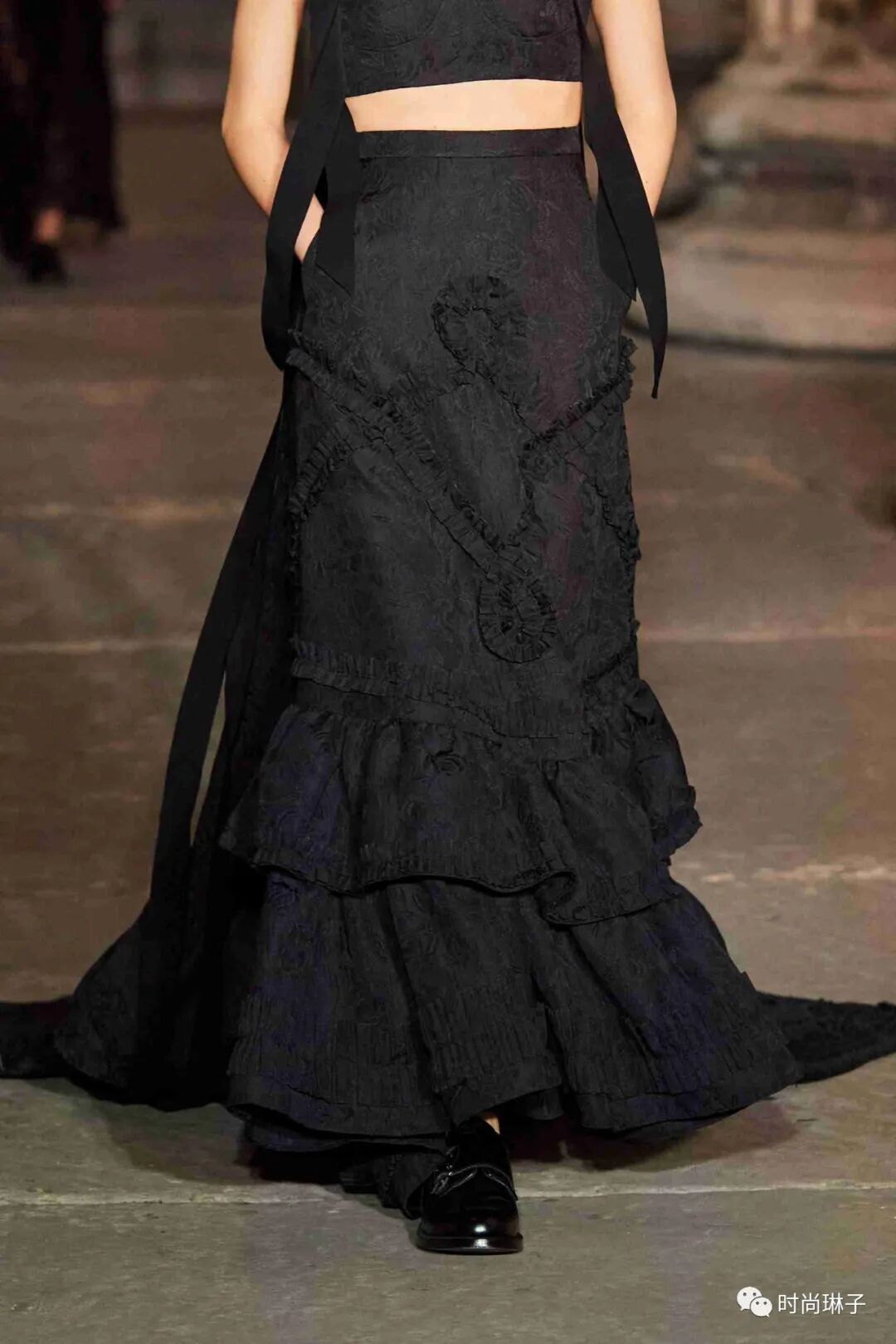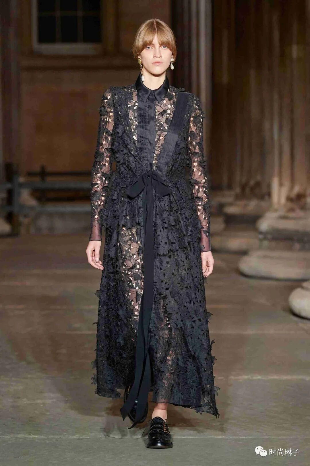 该季的轮廓从上个世纪延伸而来,精致的花卉刺绣缠绕在裙装上,蕾丝裙演变成针织衫,巴洛克帽饰,复古的风格和现代设计相结合,延续了品牌的黑暗浪漫风。