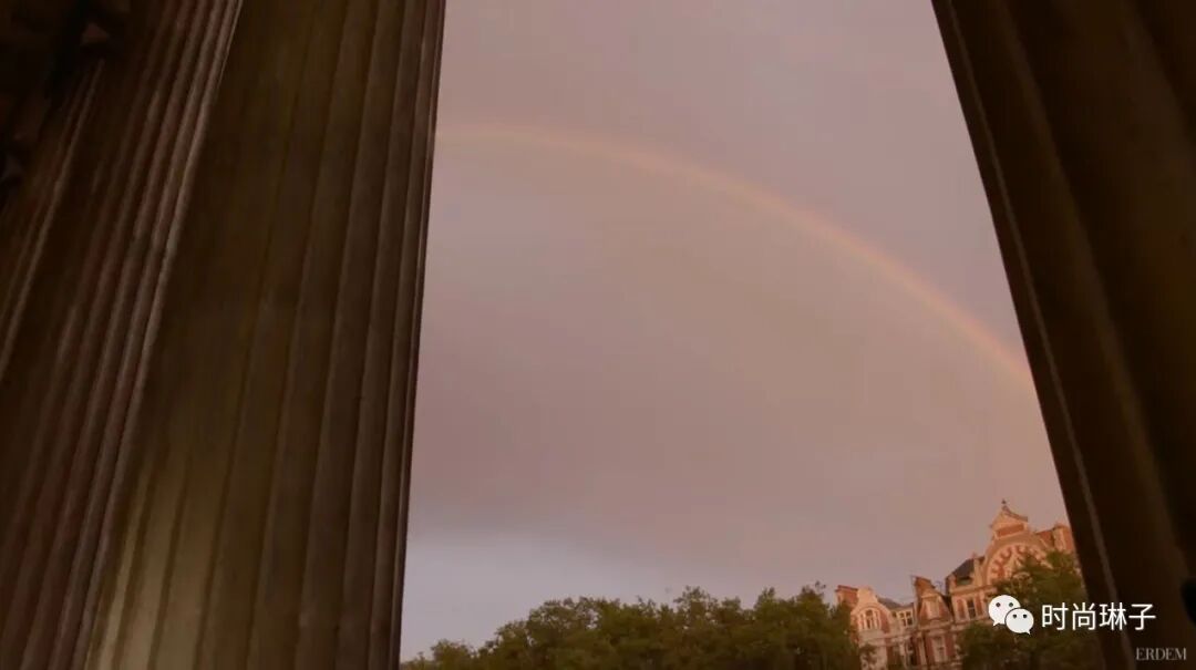 Erdem 2022 春夏时装秀在位于伦敦Bloomsbury的大英博物馆举办,大秀进行期间,透过博物馆柱廊的柱子之间仰望天空,一道美轮美奂的彩虹的出现是对品牌15周年最好的致敬。