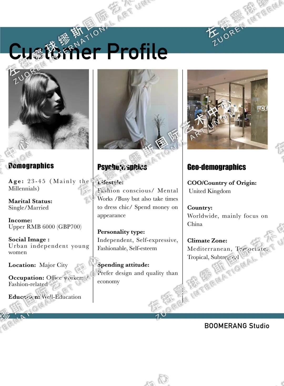 HUICHAO:我在左衽寰球学习作品集的过程中学到了很多,吴老师特别赞!这里一定要着重感谢一下吴老师,她教的非常认真负责,我觉得我能够申请上就是材料的专业性和丰富性,每一页都凝聚着我们对于fashion business的认知和前瞻性的预测。