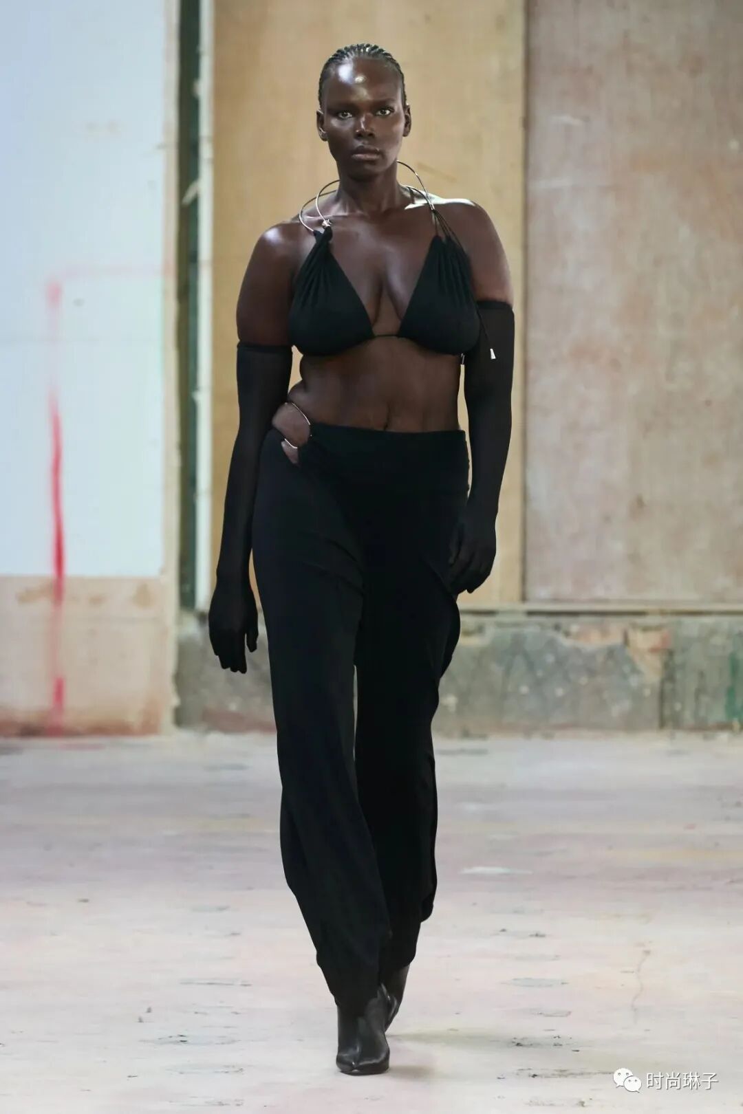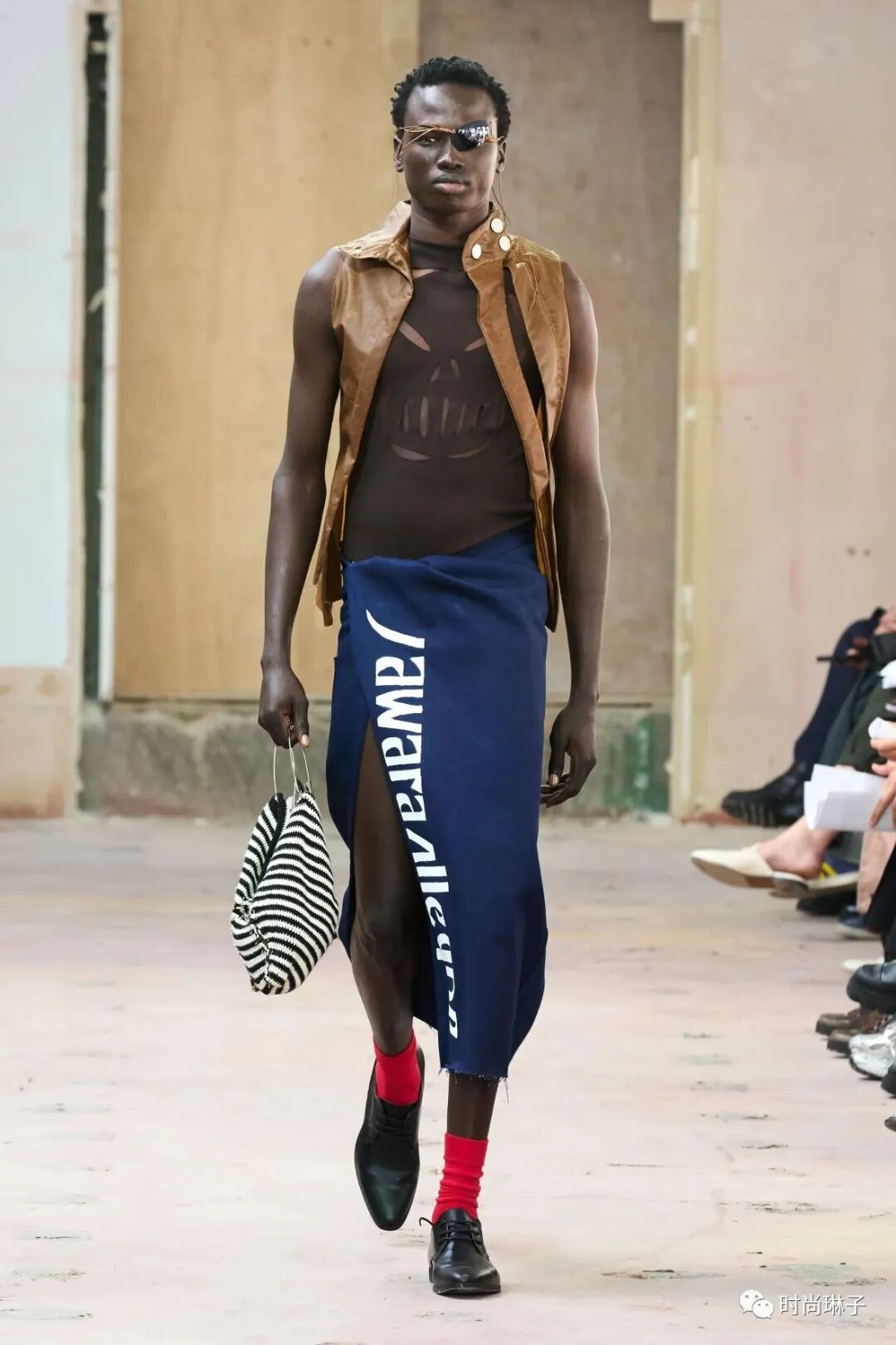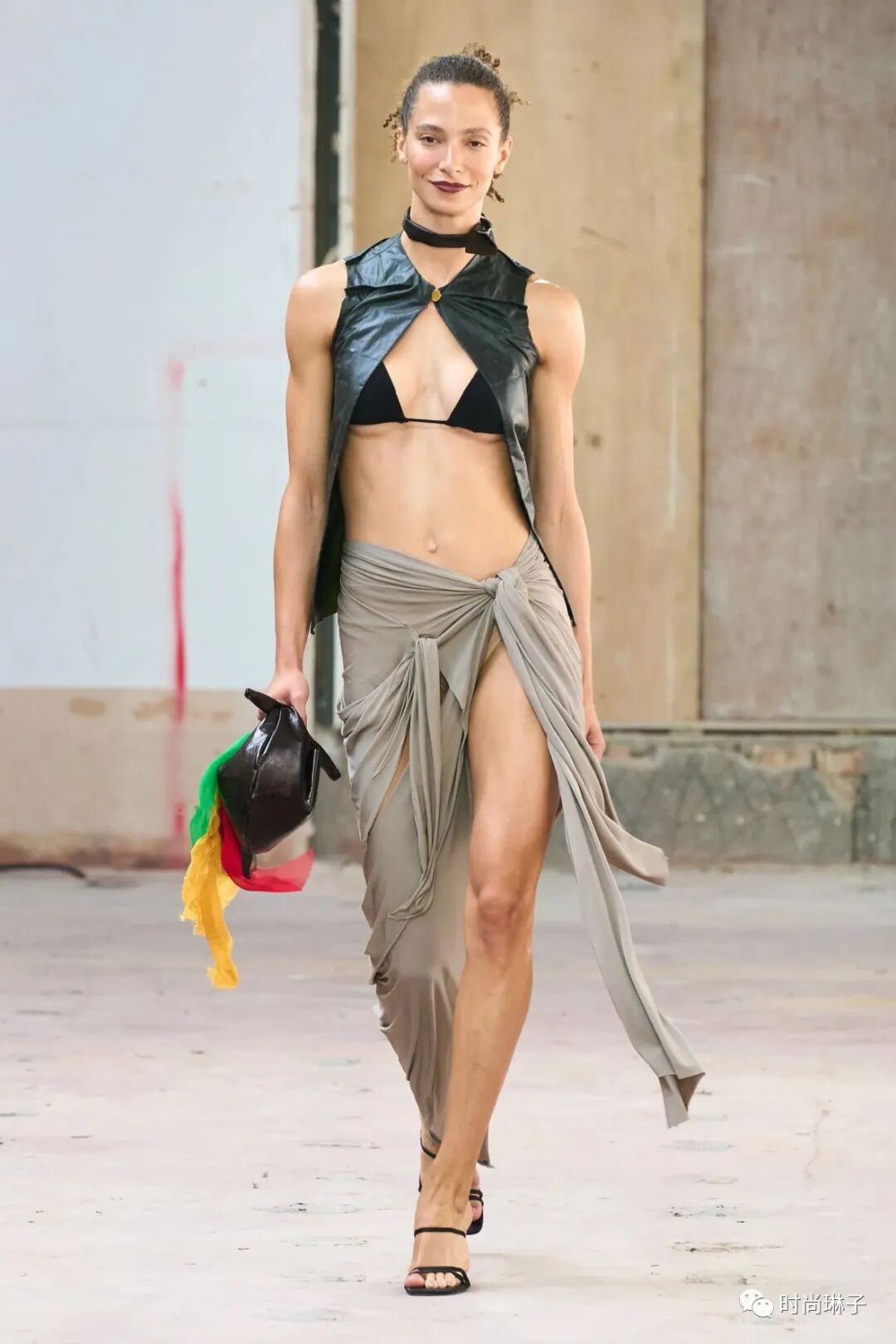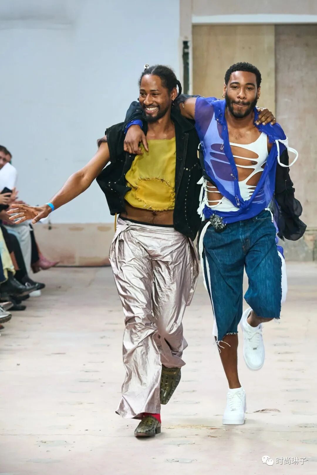 Jawara Alleyne 2023春夏系列是他在Fashion East东区时尚展示的最后一个系列。Jawara Alleyne通过别针拼接,以及面料撕裂,流苏装饰等细节设计和工艺,打造了海岛式的轻盈自由穿衣风格。