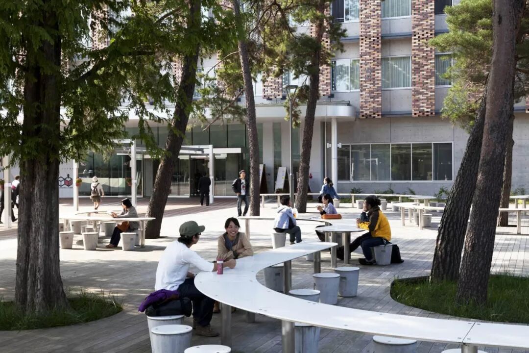桌面上还内置了花草盆景,创造出与树为邻的学习交流空间