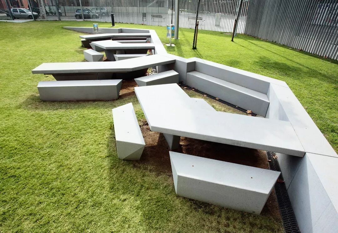 地形的不连续性通过连续元素解决,它们充当台阶,挡土墙,工作台或桌子。边界的几何解决方案以这样的方式建立,形成了无限数量的用户分组。