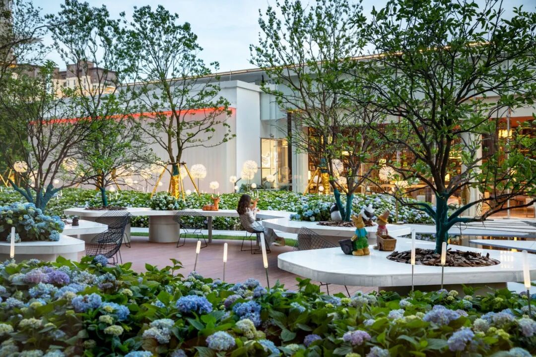 下沉儿童天地和沿商业的树桌休憩花园,休闲的林下空间,家长可以带小孩在这里交友玩耍,年轻人也可在此寻得一方宁静之地。