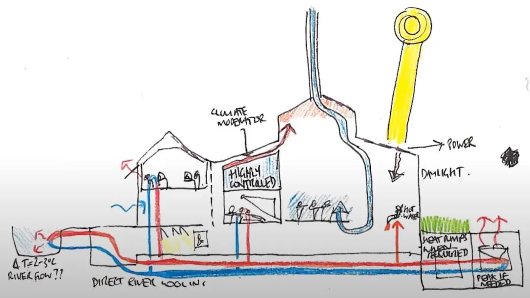 原建筑地下还设有一个大型城市可持续排水系统和雨水回收利用系统,但由于目前的配置与该循环系统有所冲突,所以在最终的设计中并没有应用。