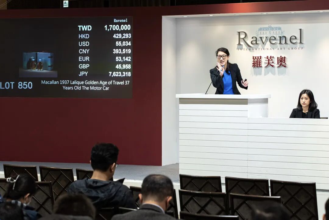 威士忌专场以艾雷岛嘉年华酒款开场,仅在当地贩卖的嘉年华限定酒款经过藏家们的激烈竞价,创下了百分之百的件数成交率与160%的金额成交率,连带着本次的艾雷岛酒款亦成为市场宠儿,拍出金额成交率120%的佳绩。「封存皇室经典时刻」专区是本次拍卖的另一大焦点,呼应近期英国皇室变动,俗称「女王头」的Macallan The Queen's Diamond Jubilee以新台币452,200的惊人价格成交。而本季最受瞩目的无非数款高年份威士忌,其中全球限量160瓶的Brora 1972 40 Years Old,经过现场与电话的来回竞价,最终以新台币142.8万元觅得买家,而数量十分珍稀,仅出产50瓶的旅行黄金时代系列Macallan 1937 Lalique Golden Age of Travel 37 Years Old The Motor Car,最终以新台币202.3万的价格成交。在这个市场波动不断的威士忌世界,尊酿云集拍卖以超过八成的成交率、新台币7500万的成交额惊艳整个亚洲市场,羅芙奧感谢各界藏家的支持。
