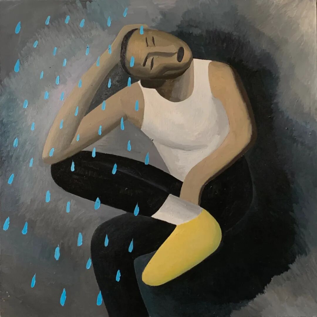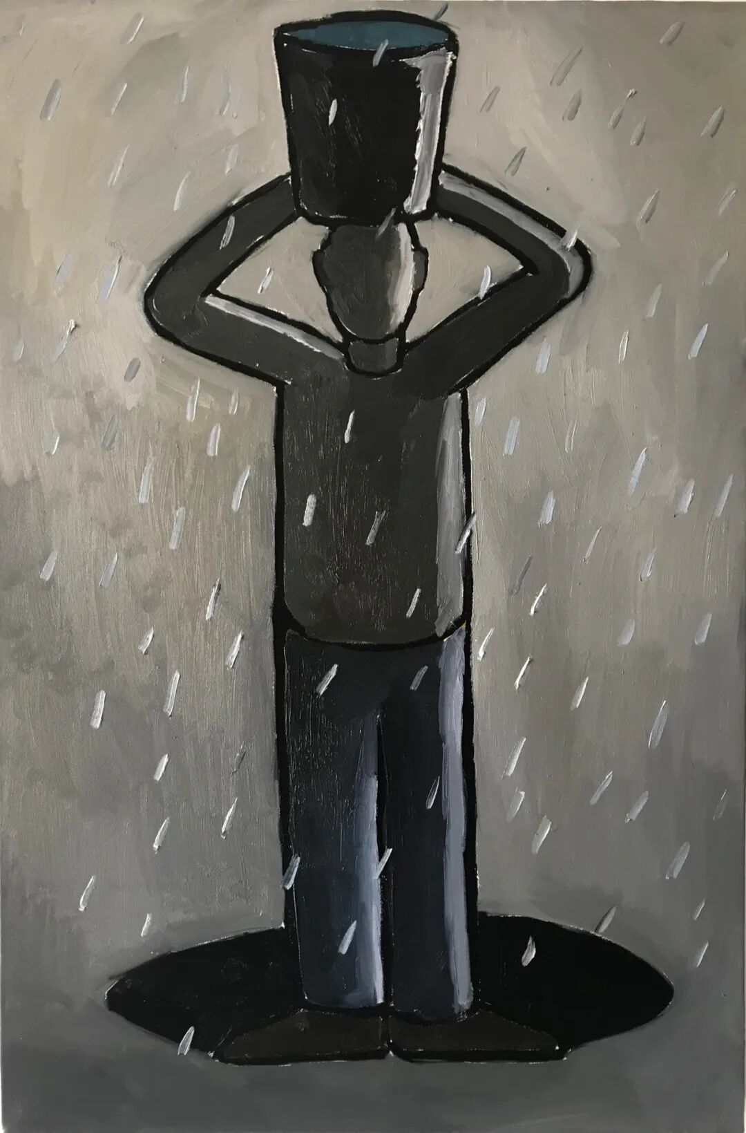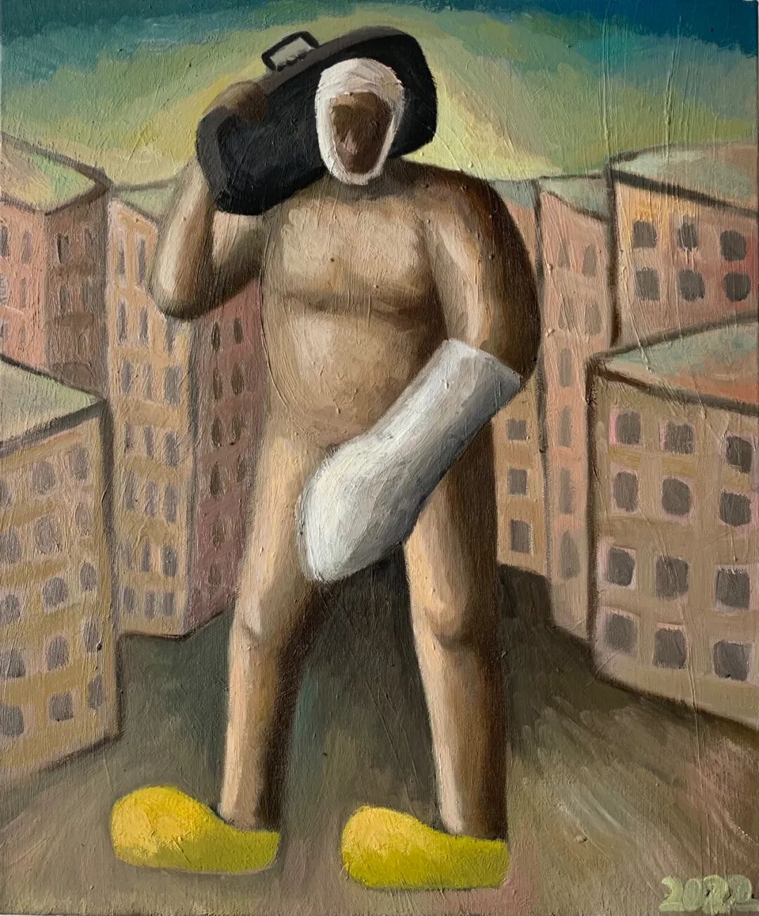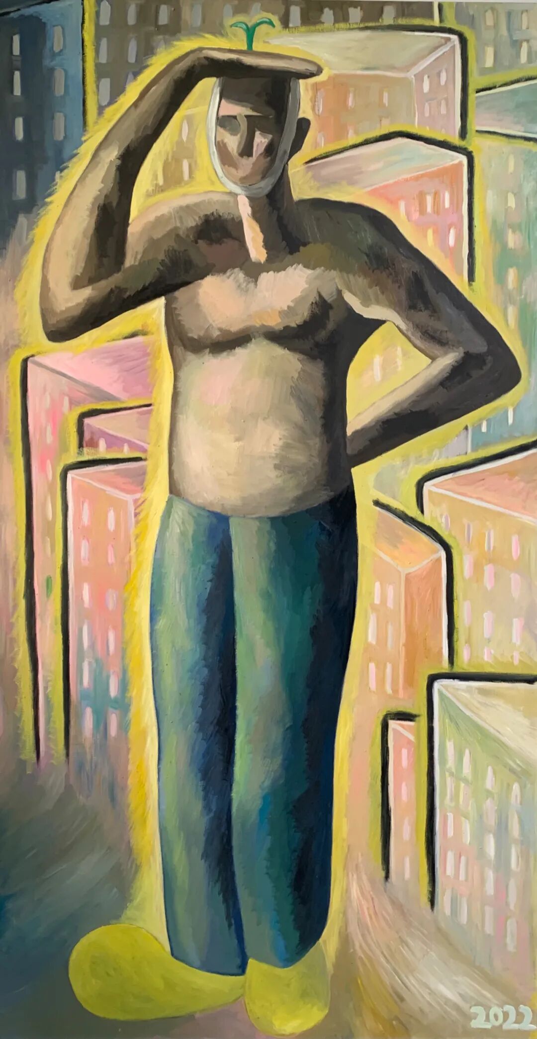 穿柠檬黄色足球鞋的人,2019,80x80cm,布面油画