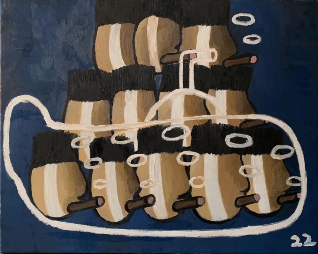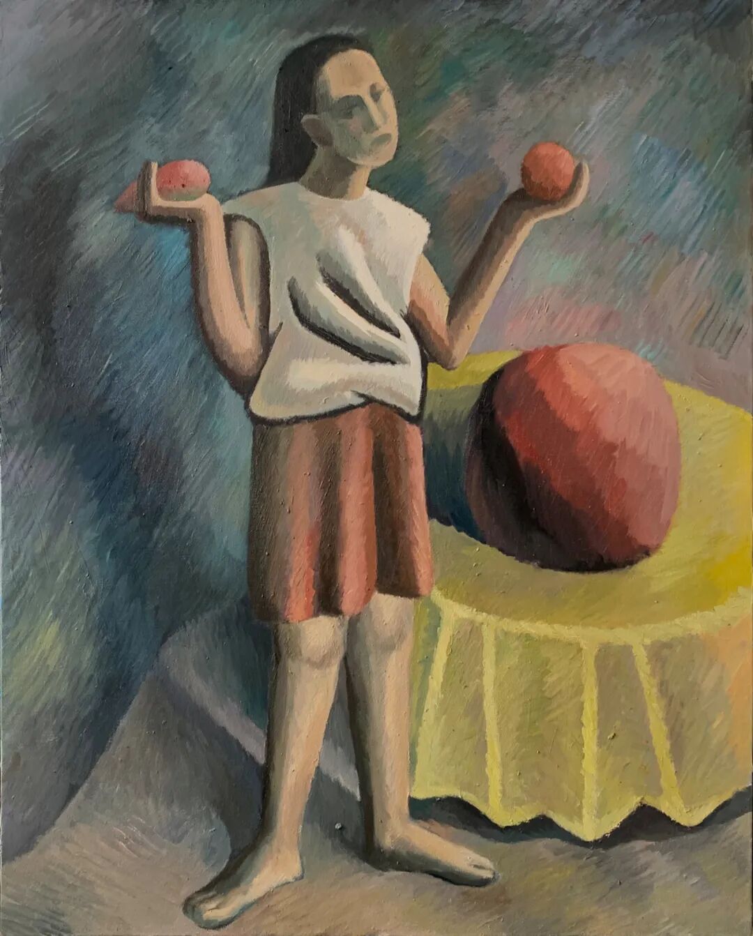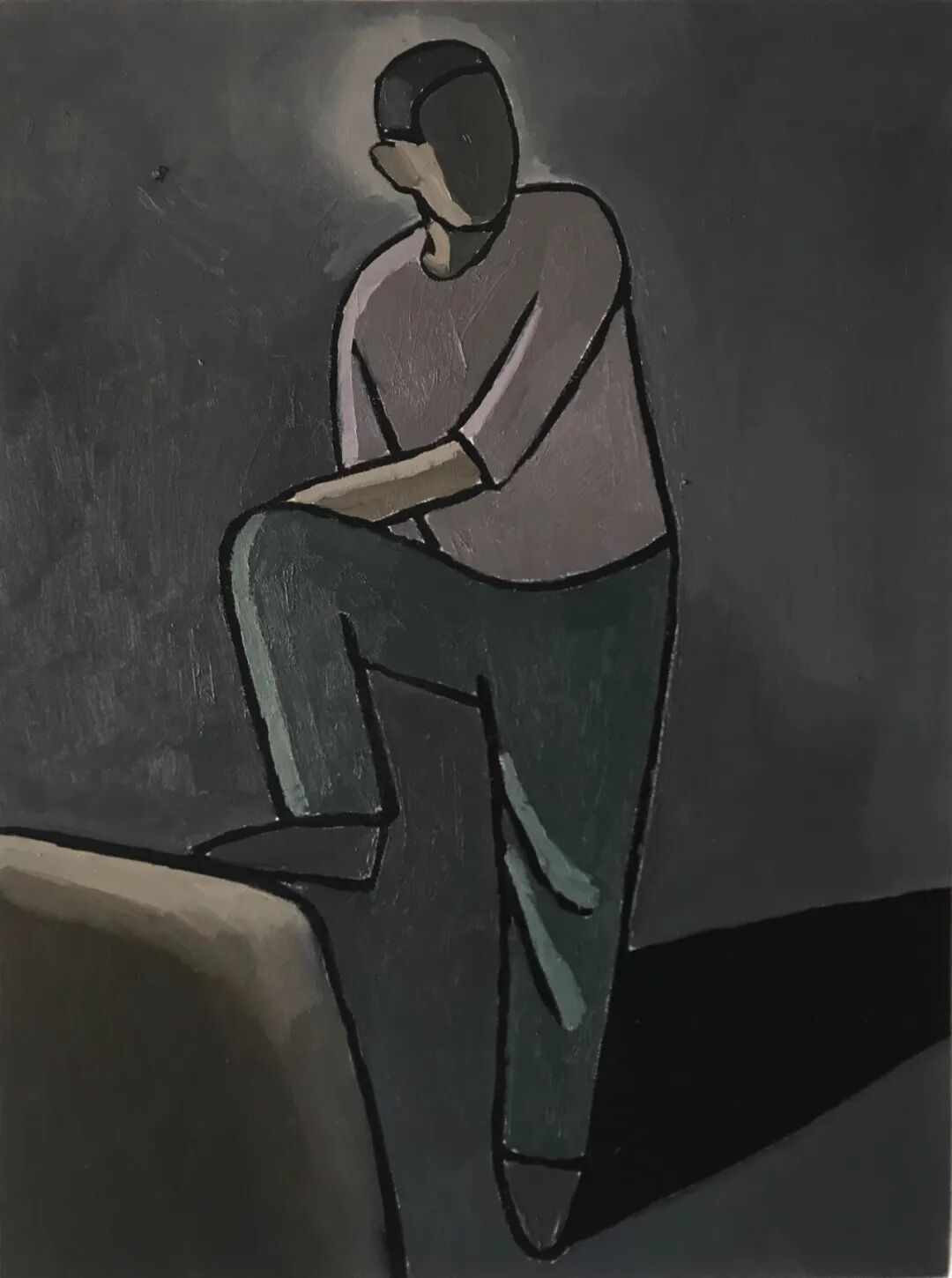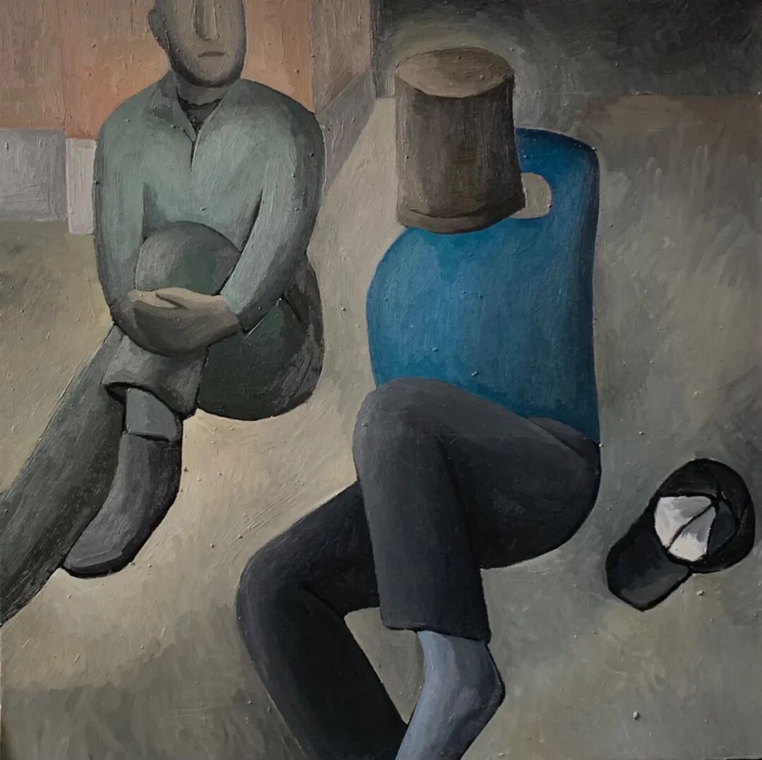 穿柠檬黄色足球鞋的人,2019,80x80cm,布面油画