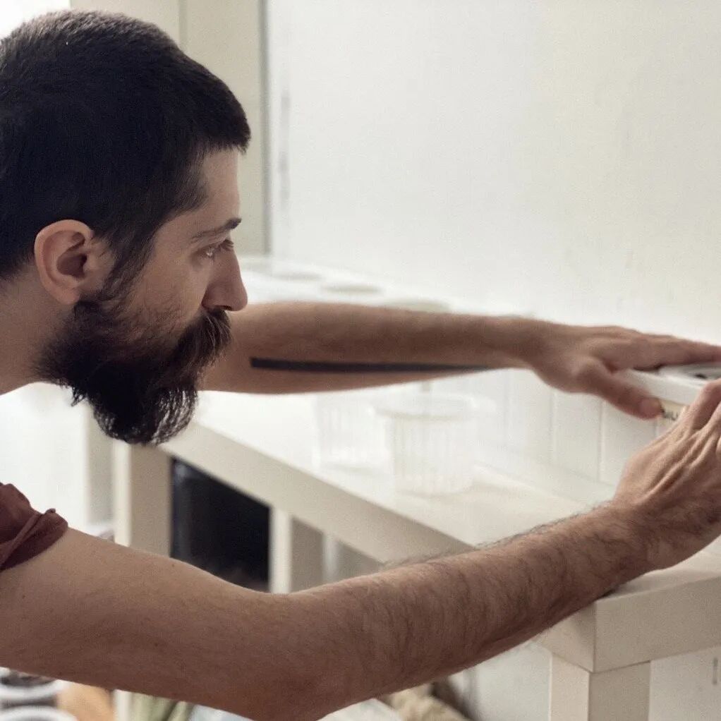 漂浮的矩形、悬空的圆柱、尖锐的三角,Alex用简单几何来表现空间的撕裂与扭曲。