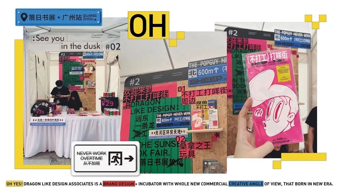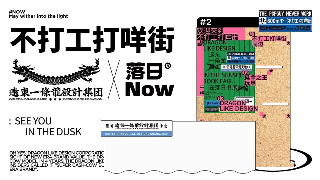 「落日书展」是@落日NOW 在过往很长一段时间中思考的体现。作为第一次的实践,落日书展集合优秀的出版社杂志书店工作室音乐厂牌,塑造创作者与公众之间更为自由有空间的沟通渠道。秉持着“打工会变丑”的人生信念,一条龙不会放过任何一个摸鱼的机会。所以在本次落日书展上,一条龙诚意罢工,在落日下放风。