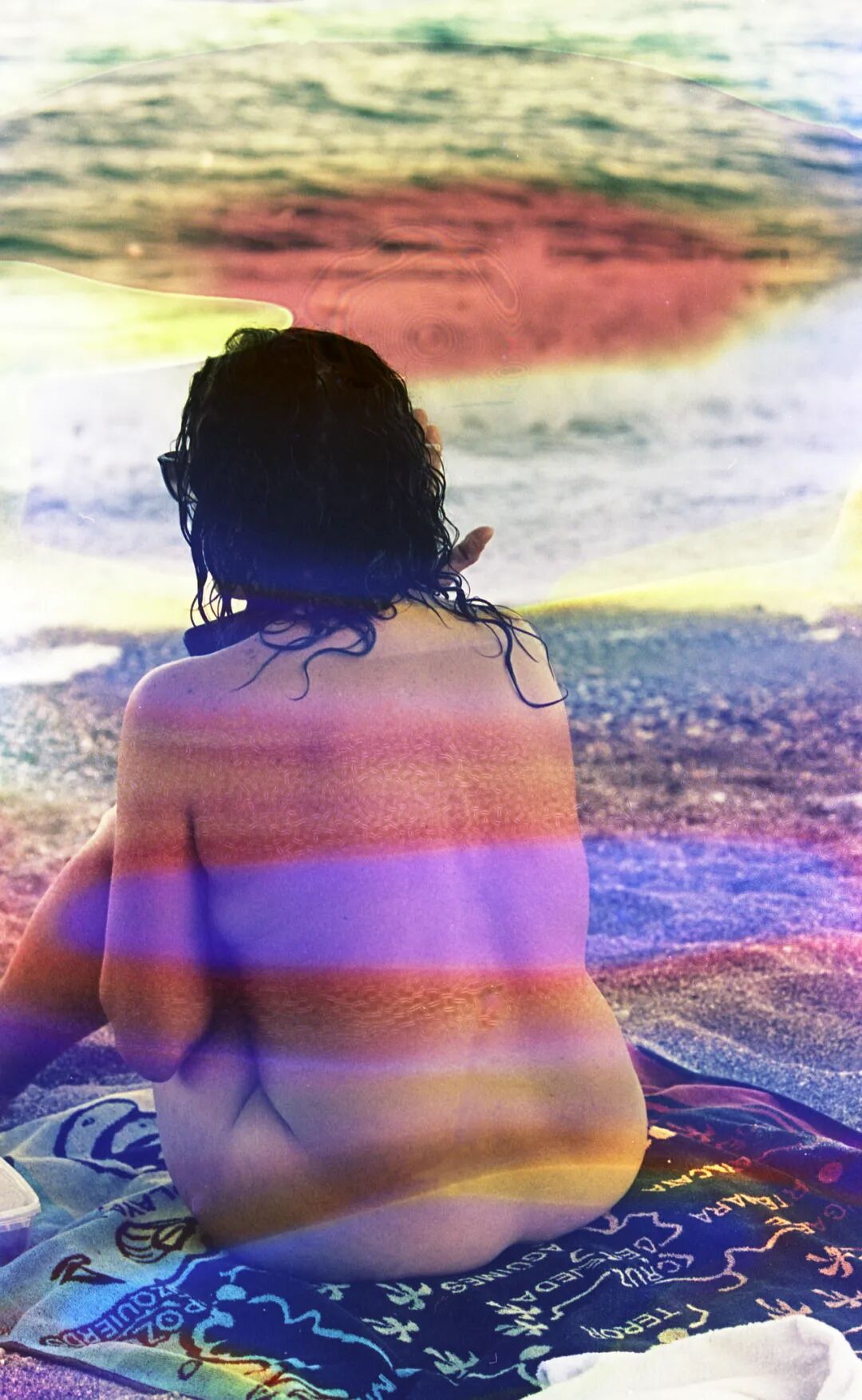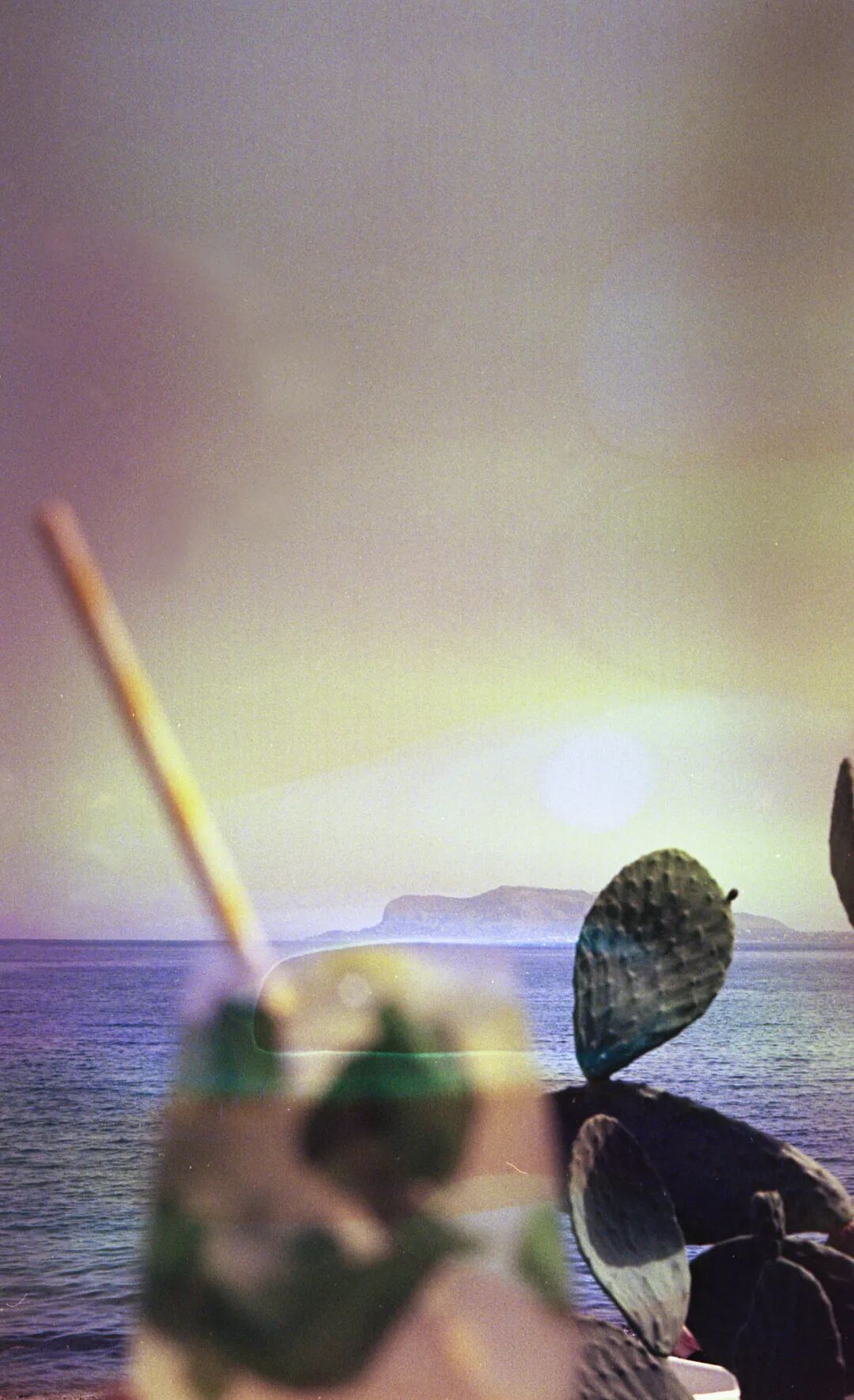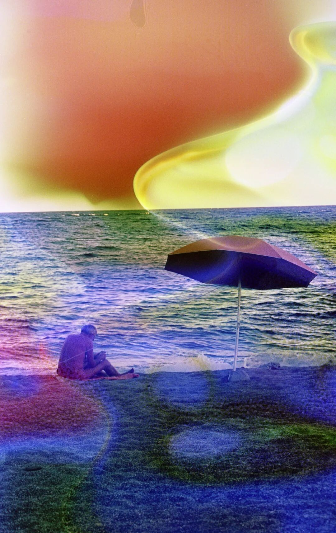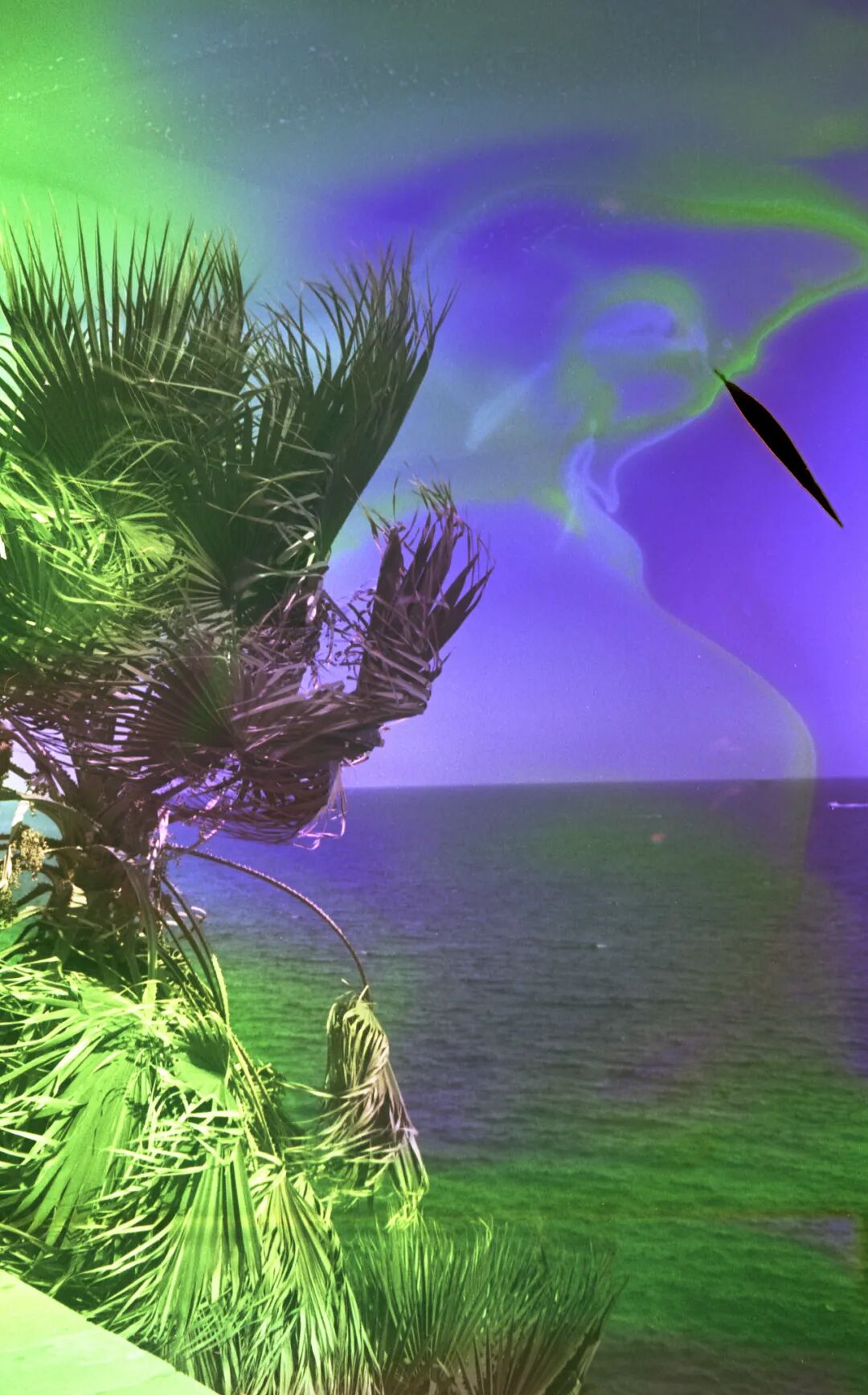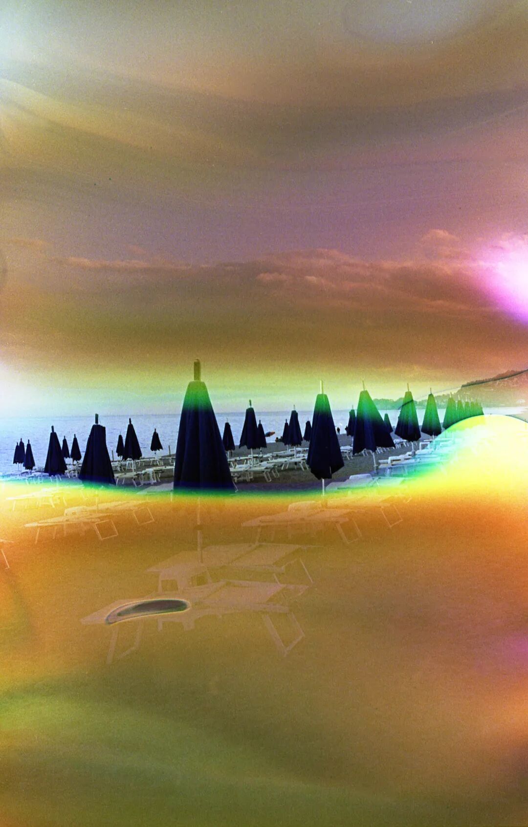 当我第一次看到 Aperol Spritz 时,我立刻被它明亮的橙色所吸引。这款鸡尾酒的中文译名是“落日余晖”,最初源于它美丽的橙色。在欧洲旅行期间,我几乎每天都喝 Aperol Spritz。它代表了我旅行时的感受:热情的流动,惊喜的碰撞,放松的灵感与随意。回到伦敦后,我把这些胶片浸泡在鸡尾酒里,鸡尾酒里的化学物质损坏了胶片的乳化层, 呈现出色彩斑斓的流动。通过这种方式,我再一次重温这段美好的回忆。