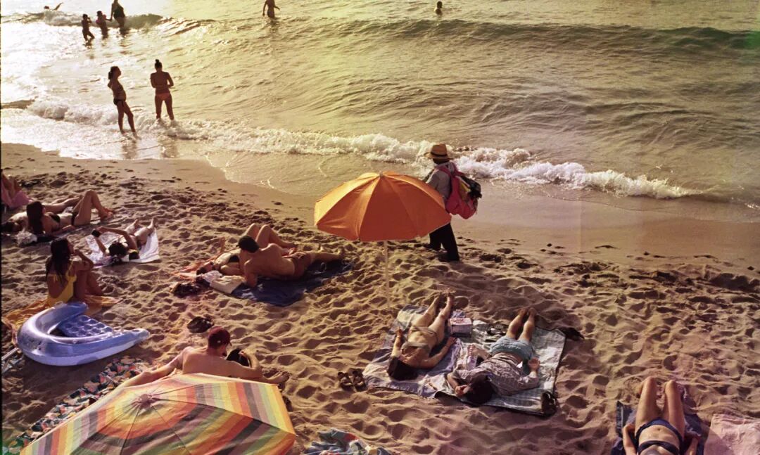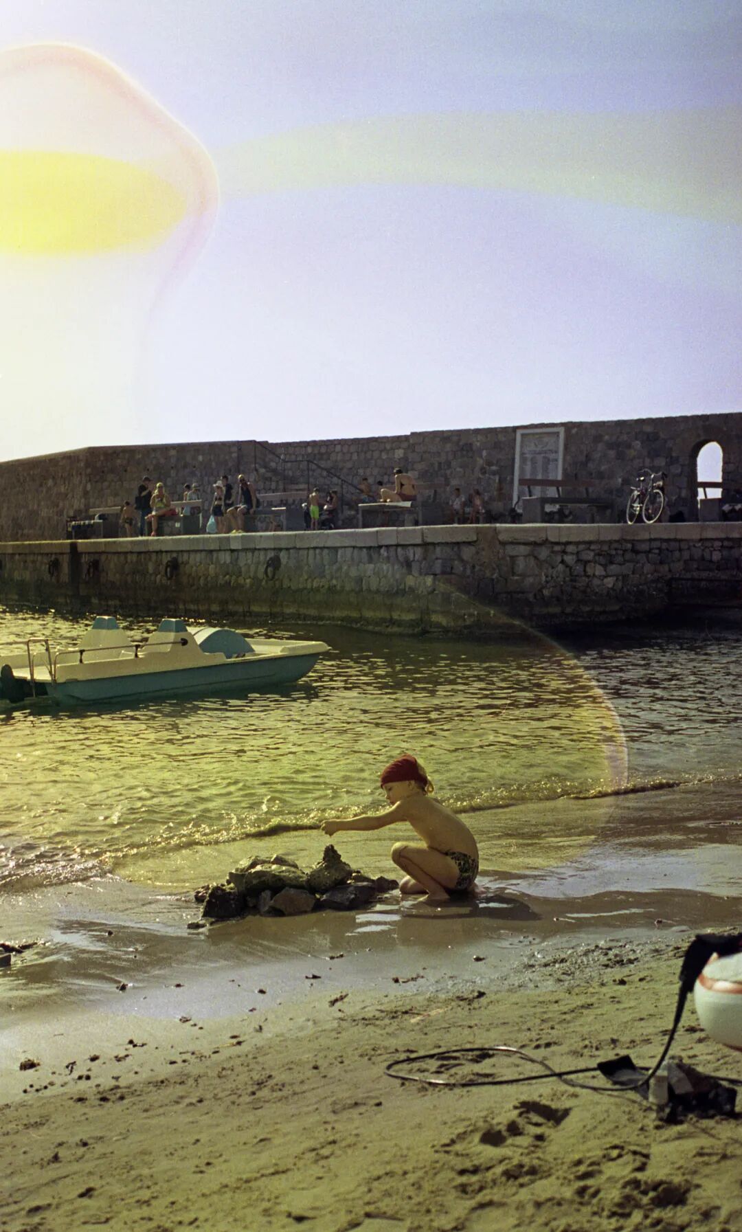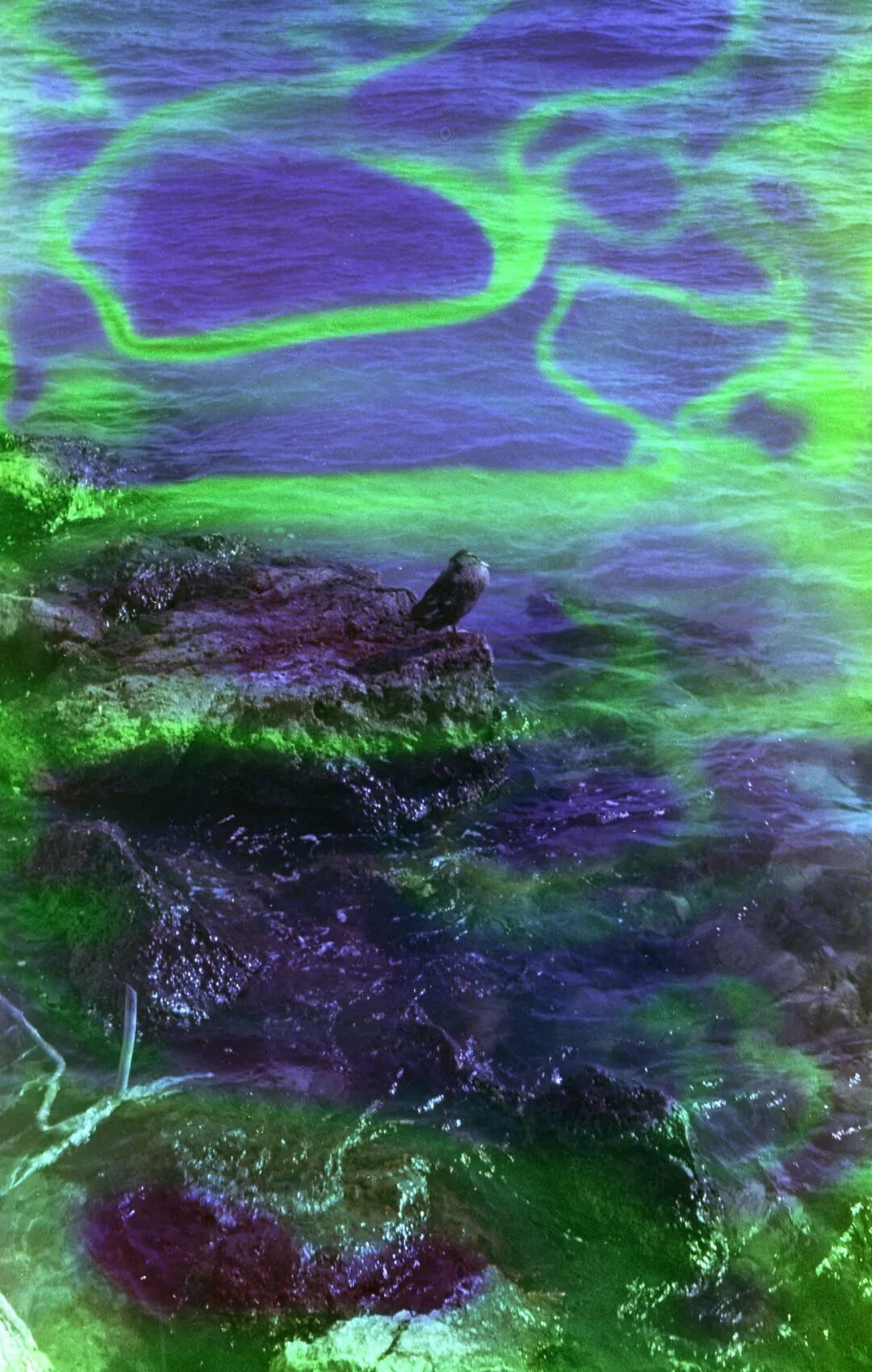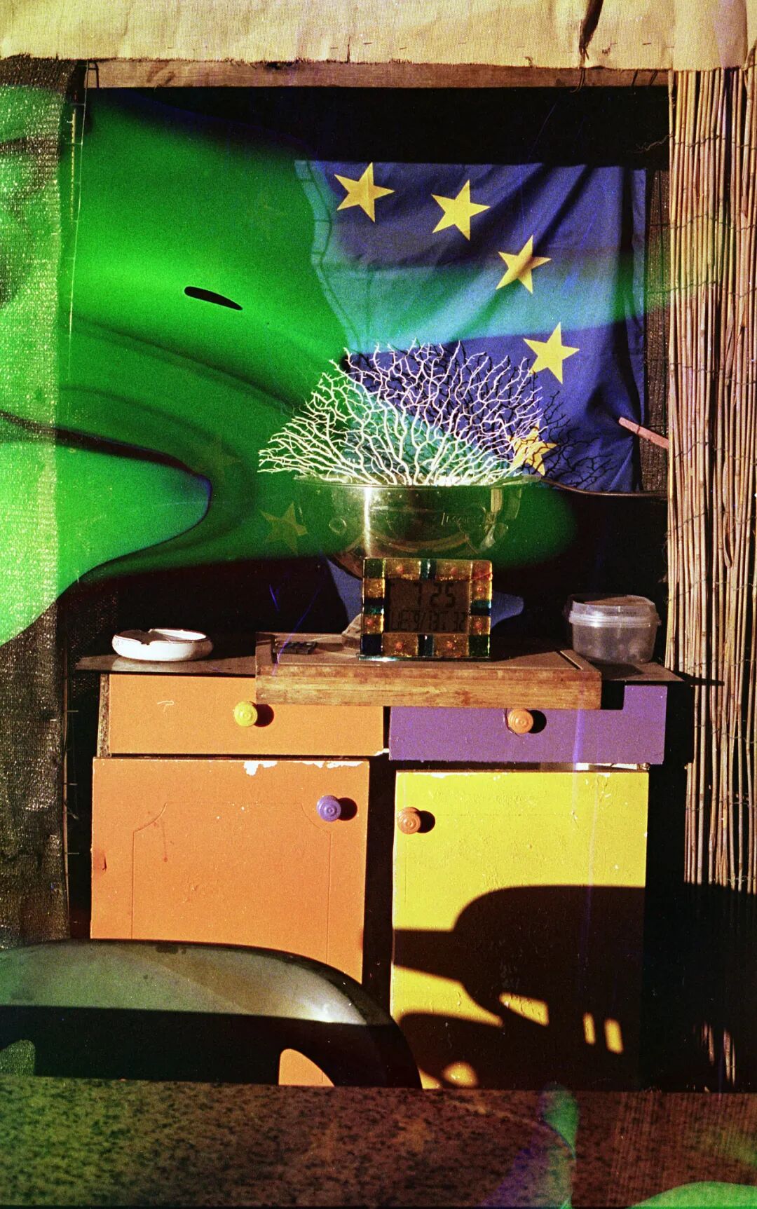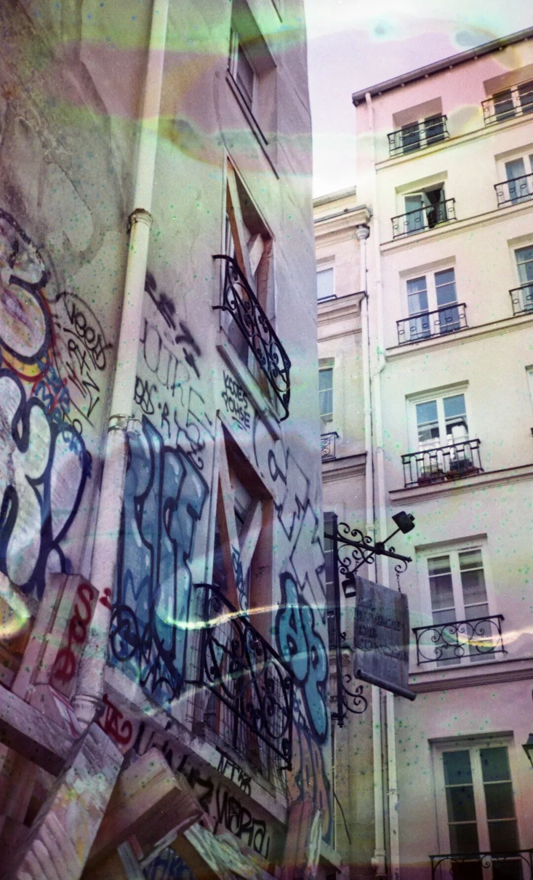 当我第一次看到 Aperol Spritz 时,我立刻被它明亮的橙色所吸引。这款鸡尾酒的中文译名是“落日余晖”,最初源于它美丽的橙色。在欧洲旅行期间,我几乎每天都喝 Aperol Spritz。它代表了我旅行时的感受:热情的流动,惊喜的碰撞,放松的灵感与随意。回到伦敦后,我把这些胶片浸泡在鸡尾酒里,鸡尾酒里的化学物质损坏了胶片的乳化层, 呈现出色彩斑斓的流动。通过这种方式,我再一次重温这段美好的回忆。
