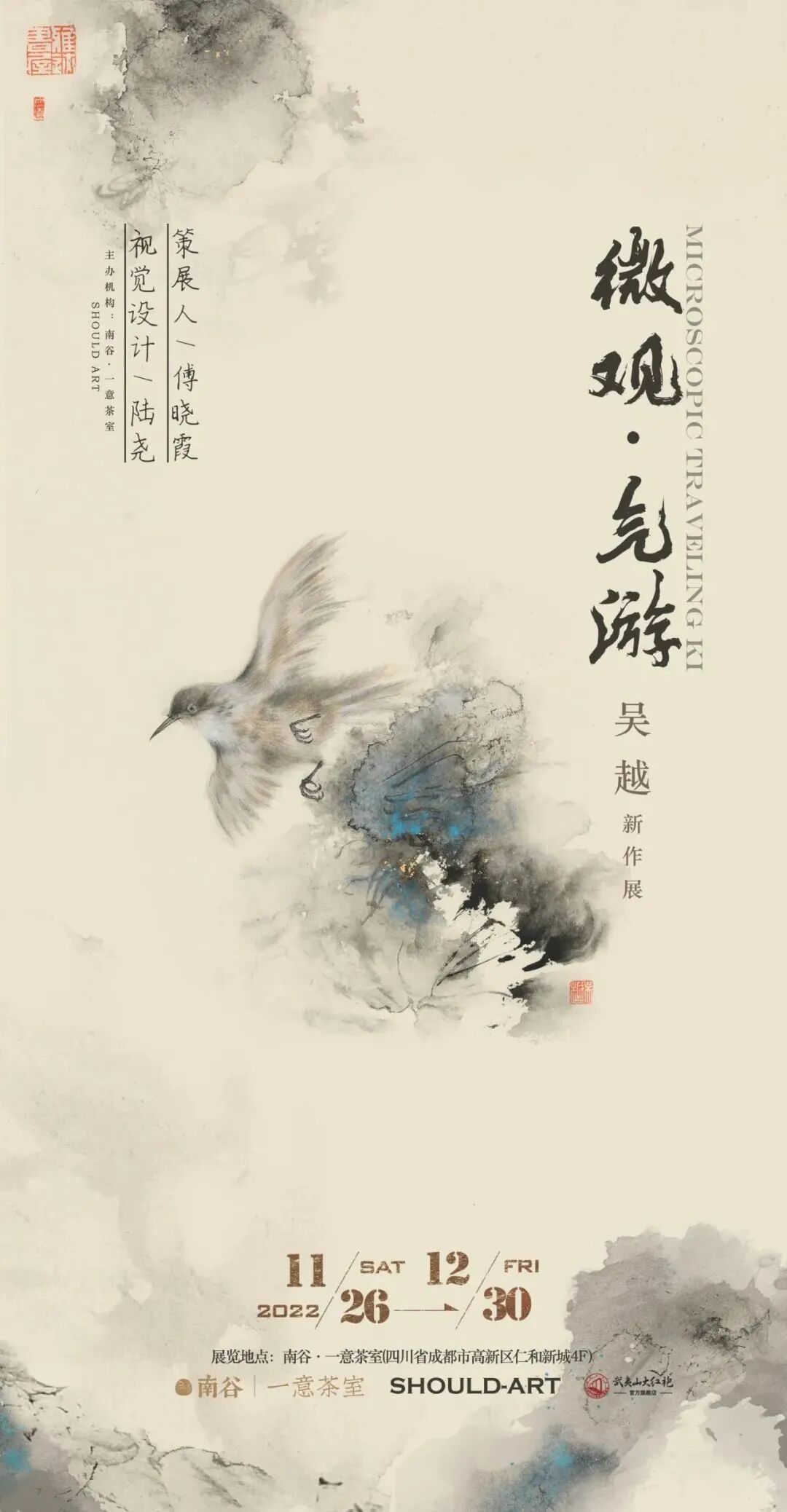 本次展览主题中的“微观”,意指吴越的绘画的关注点。历来工笔画讲究的“细致工整”、吴越的工笔画除注重于“有巧密而精细者”的画法,动物的毛发纤毫毕现。同时也关注世间的“微观事物”:一虫一鸟、一草一木,都是再细微不过的生活细节。